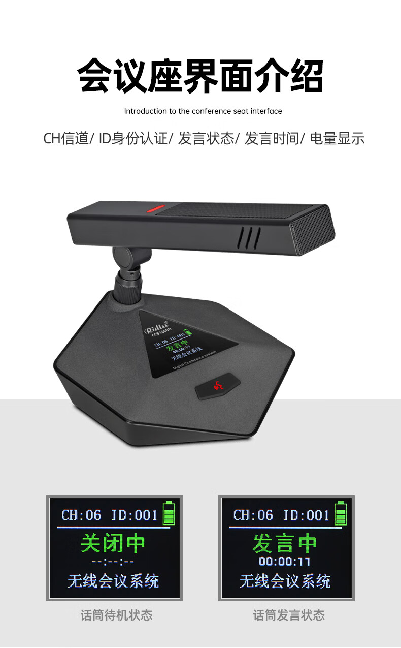 • 商品名称:RidissCCS1000无线手拉手会议话筒视像跟踪系统讨论型鹅颈台式桌面麦克风 CCS1100/台