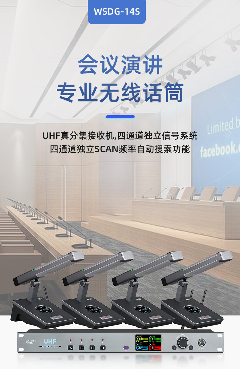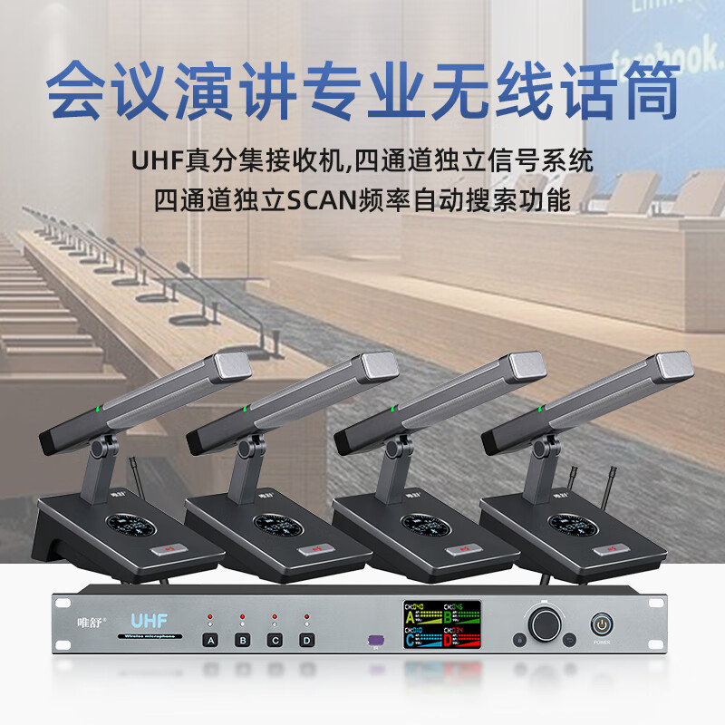 商品名称: 唯舒WSDG-14S真分集方管麦克风200米远距离Type-C充电接口或装电池无线抗干扰话筒专业会议系统一拖四 WSDG-14S/套