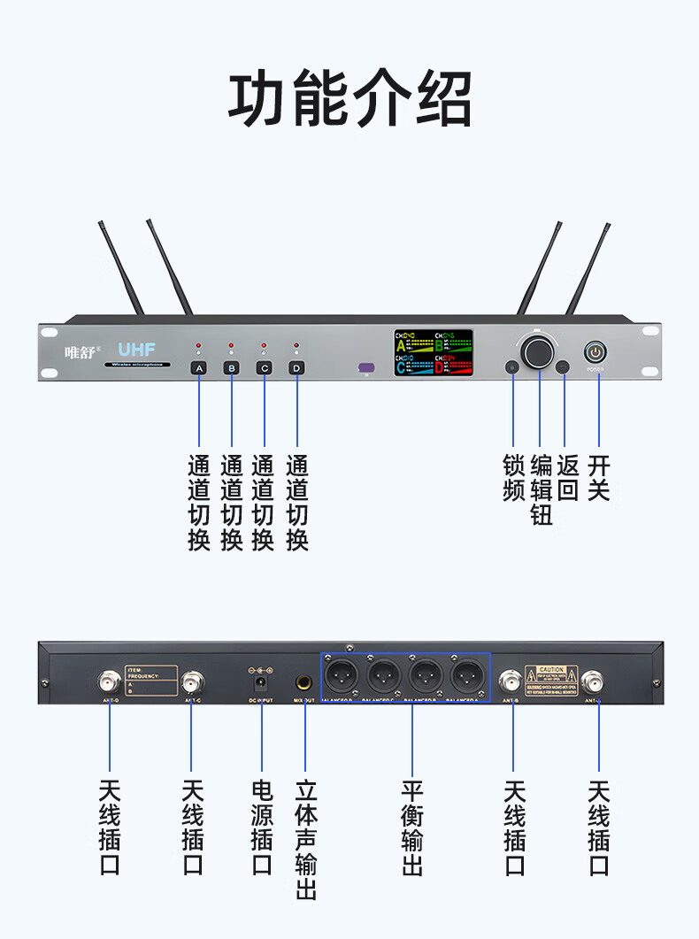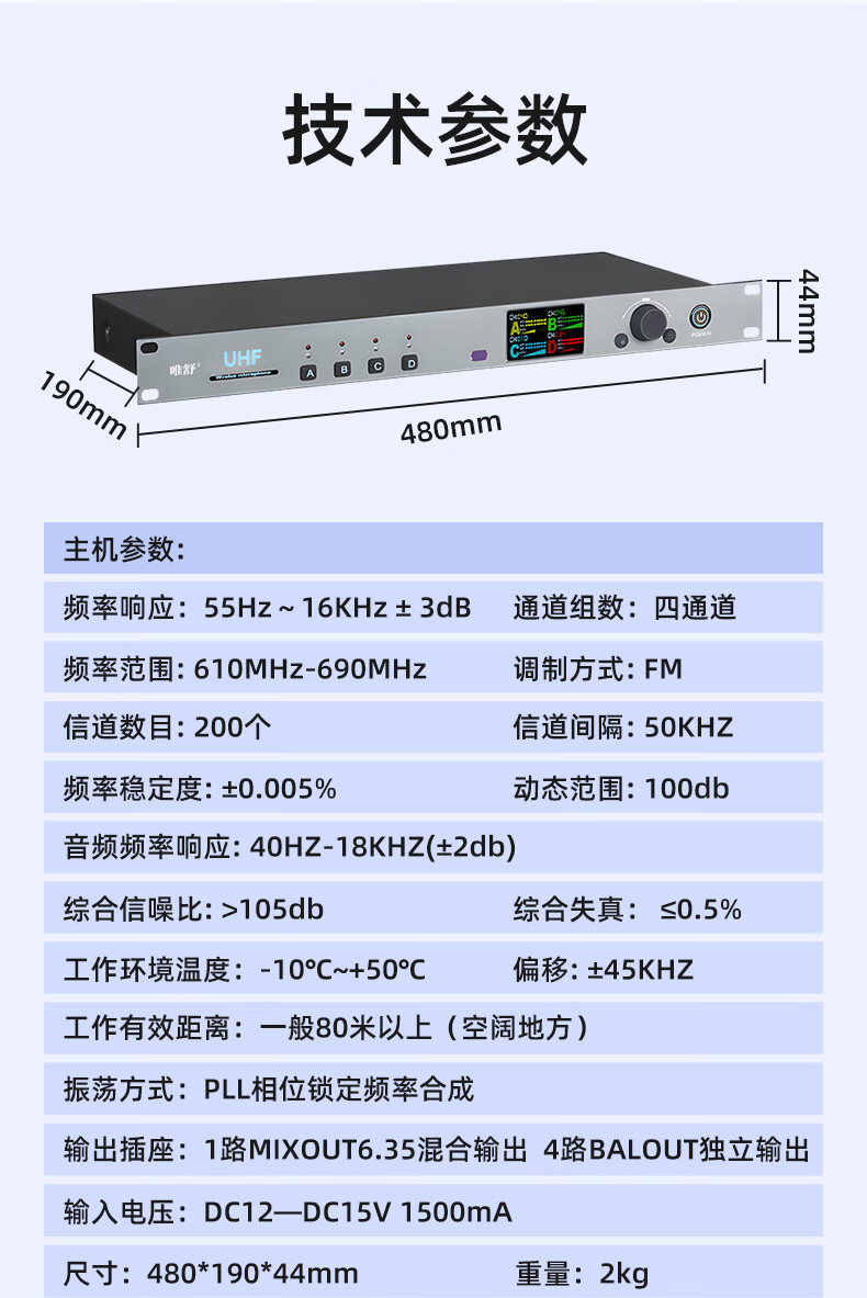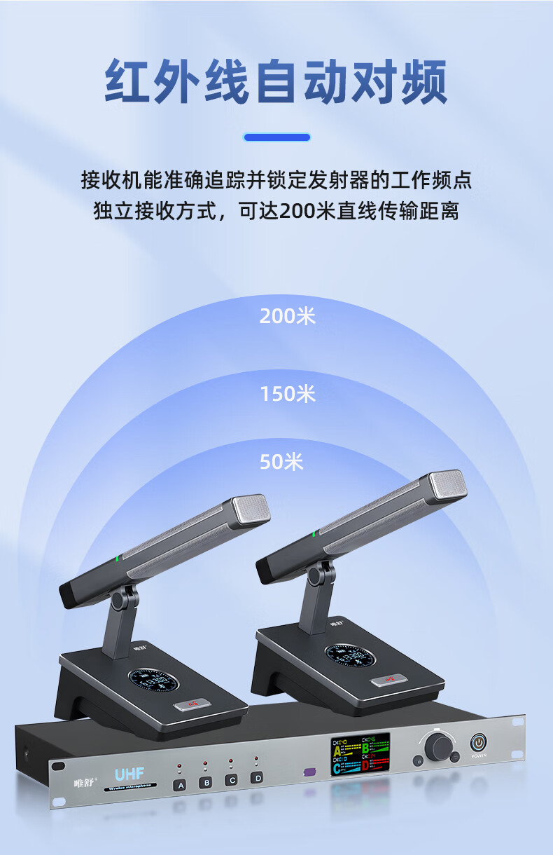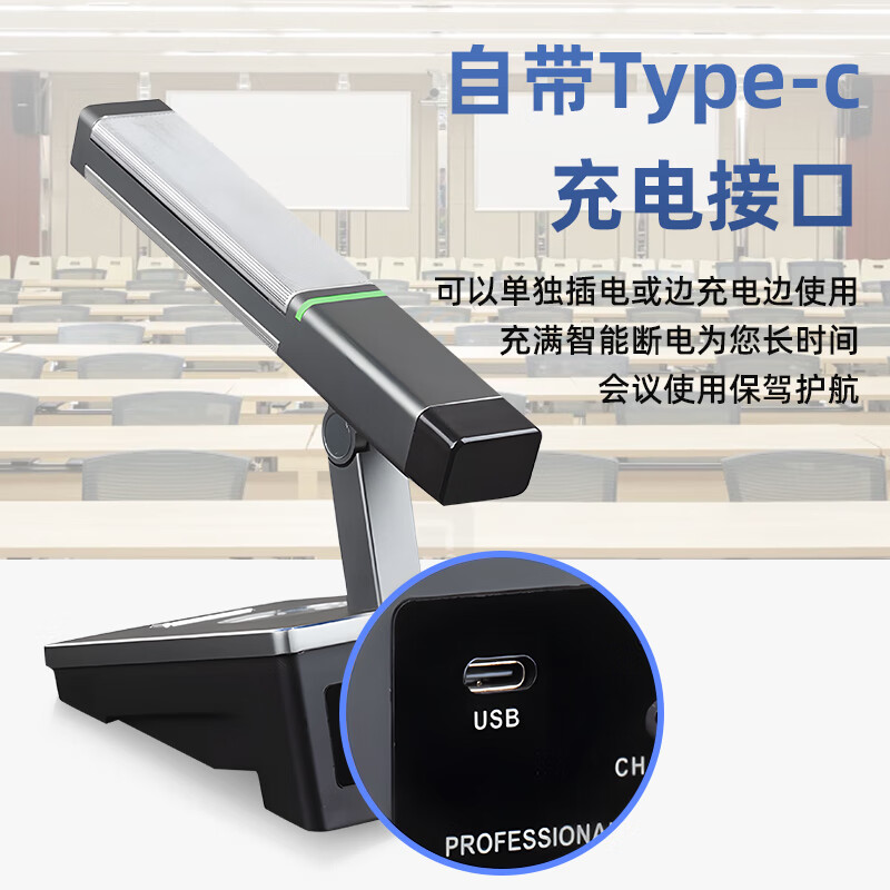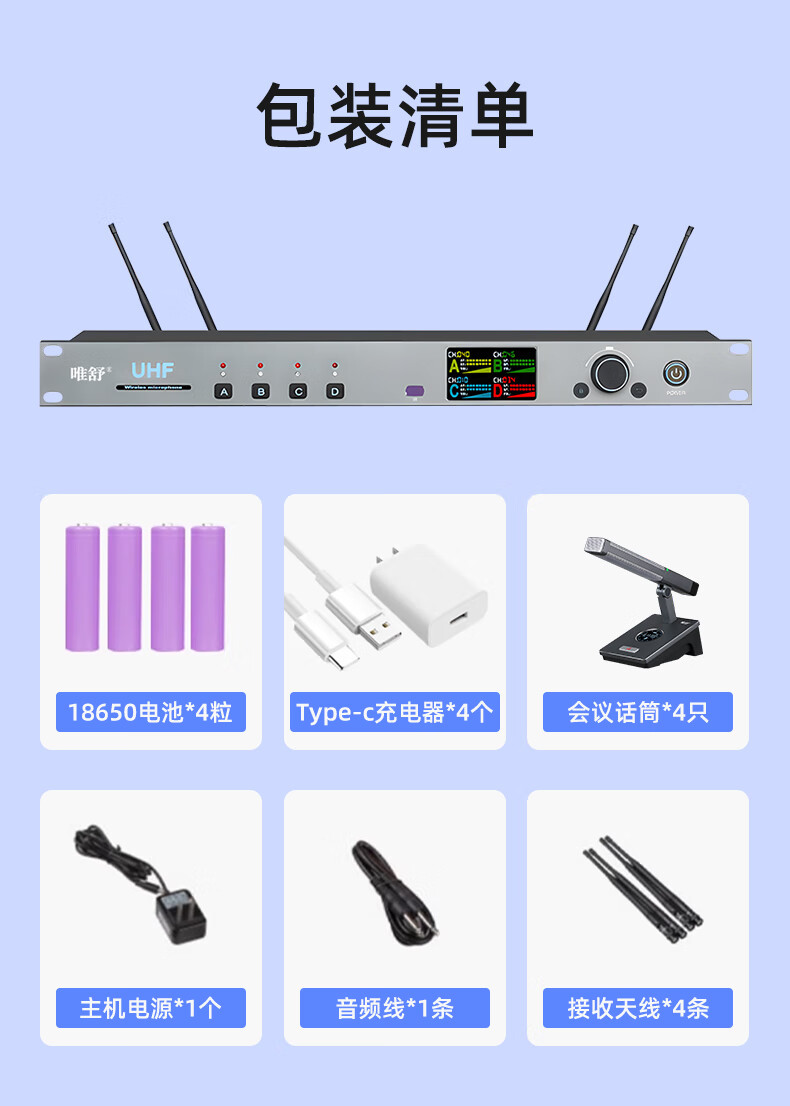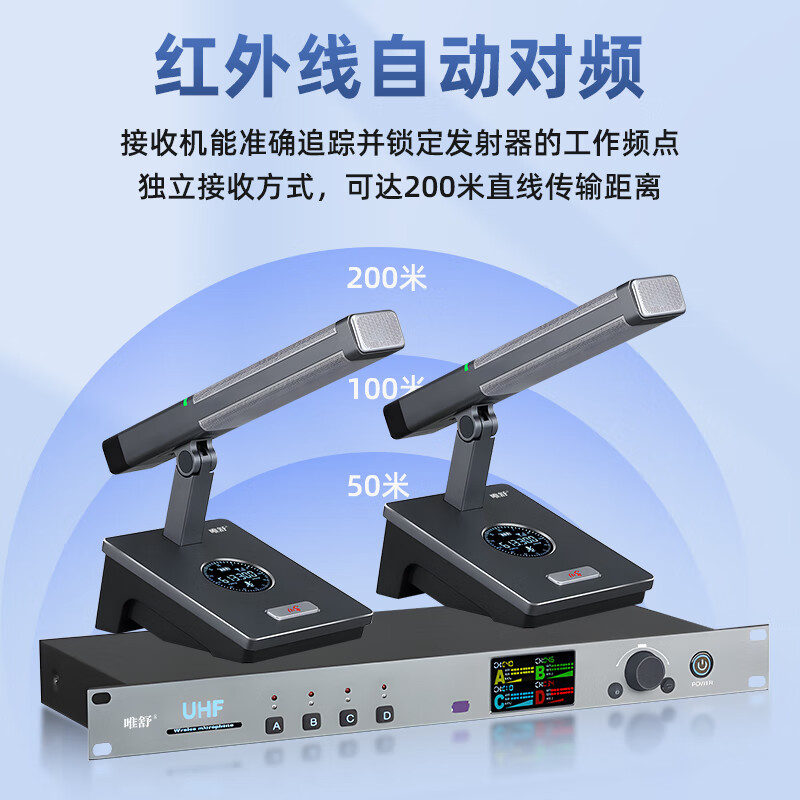 • 商品名称:唯舒WSDG-14S真分集方管麦克风200米远距离Type-C充电接口或装电池无线抗干扰话筒专业会议系统一拖四 WSDG-14S/套