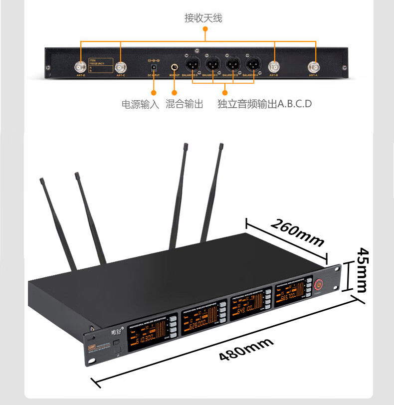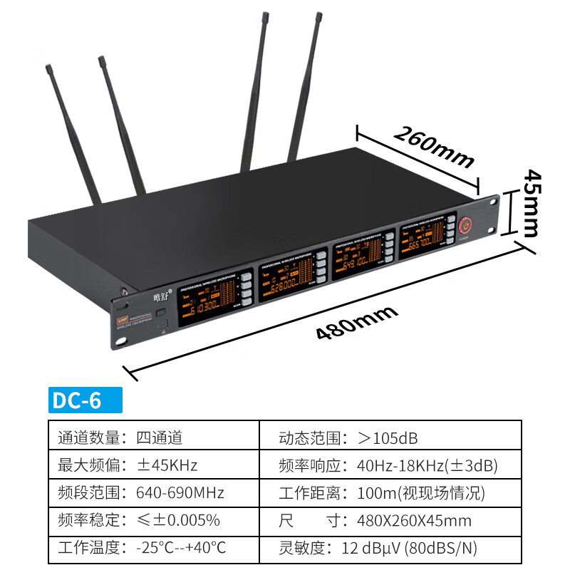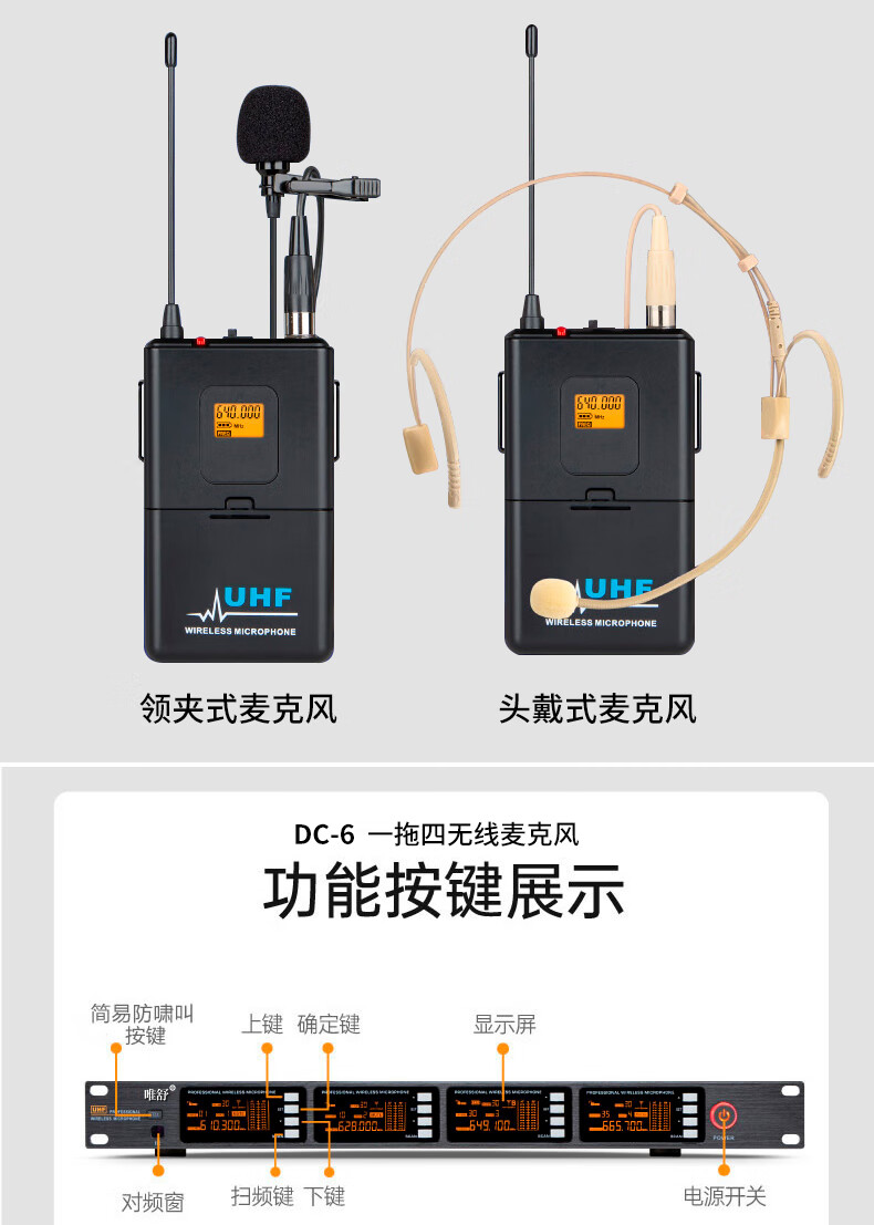 • 商品名称:唯舒DC-6-SX手持一拖四无线会议话筒系统U段可调频KTV卡包工程演讲采访专用晚会主持麦圈麦克风香槟色 DC-6-SH/台