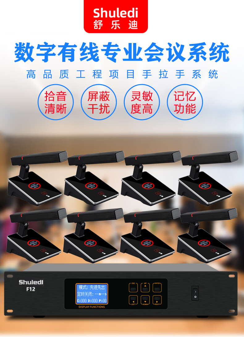 数码  > 影音娱乐  > 麦克风  >  舒乐迪/shuledi  >  舒乐迪(shuledi)F12会议室专业有线手拉手会议话筒麦克风 会议室桌面麦克风网线八芯线两用接话筒网线0.5米 F-12/套