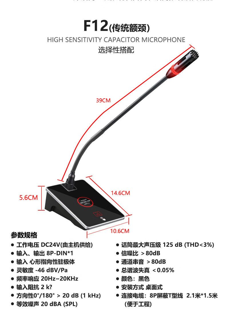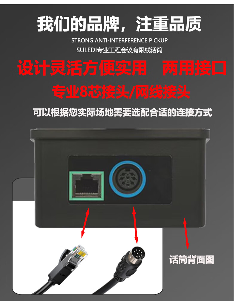 商品名称: 舒乐迪(shuledi)F12会议室专业有线手拉手会议话筒麦克风 会议室桌面麦克风网线八芯线两用接话筒网线0.5米 F-12/套