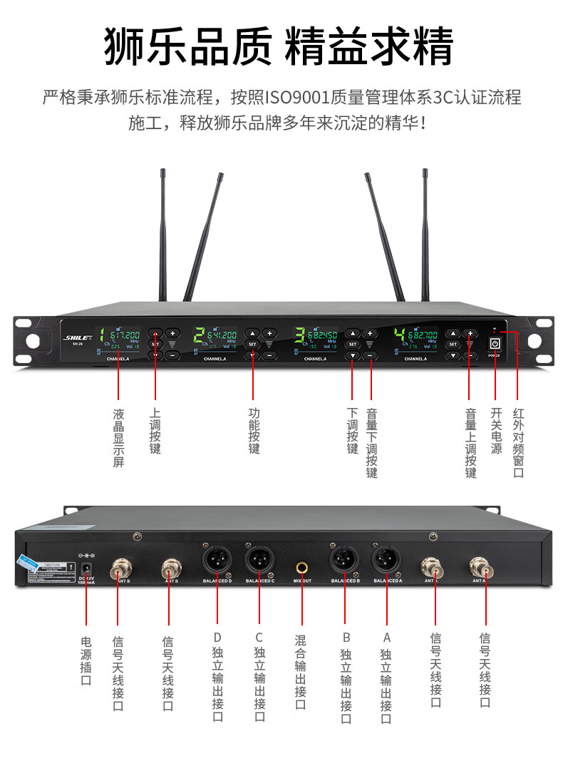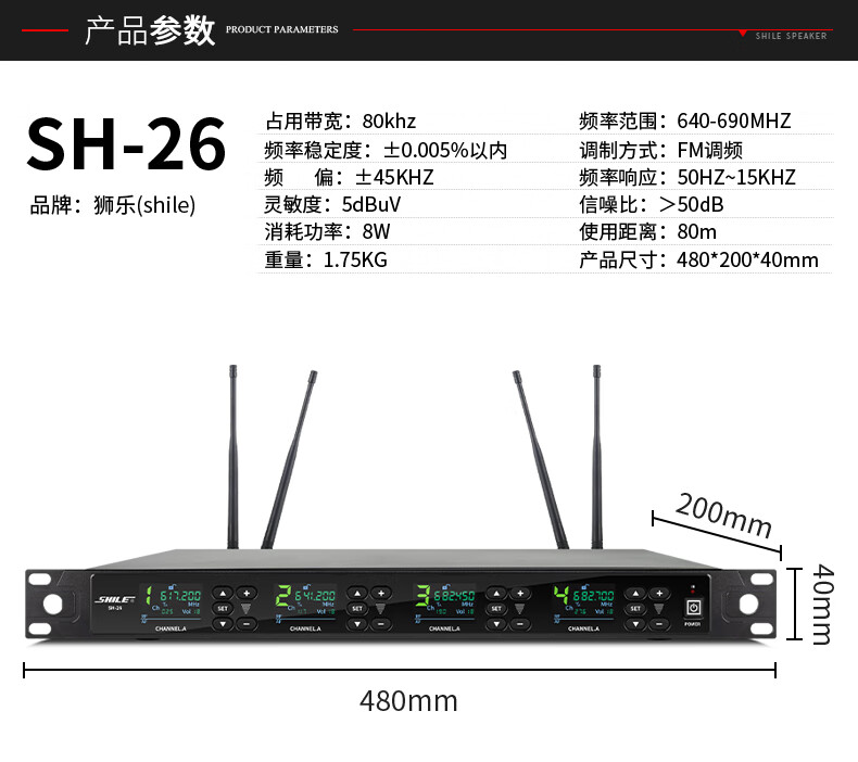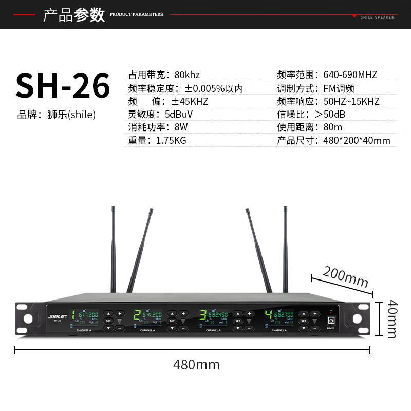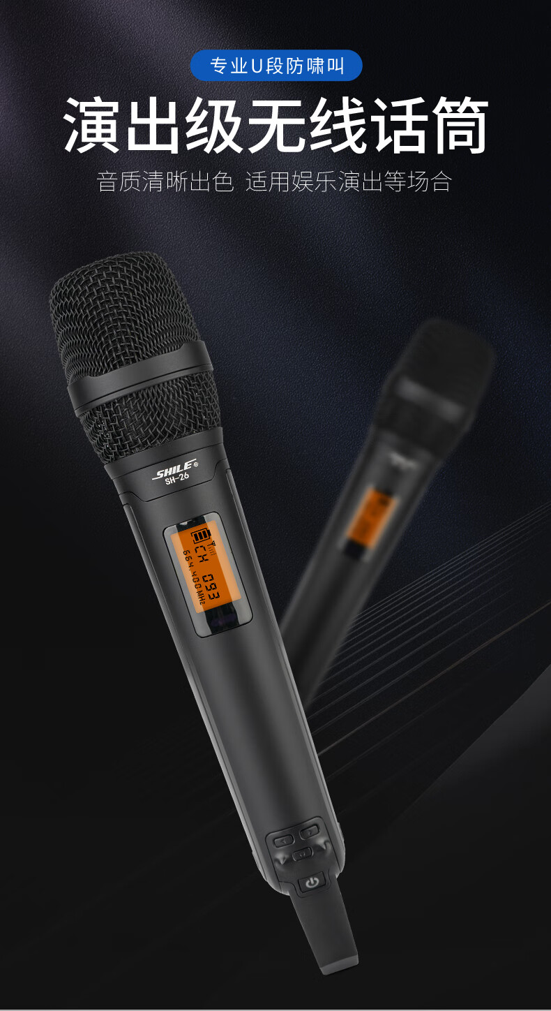• 商品名称:狮乐(SHILE)SH-26无线话筒一拖四U段可调频会议培训桌面话筒手持麦克风2手持2会议方管 SH-26/套
