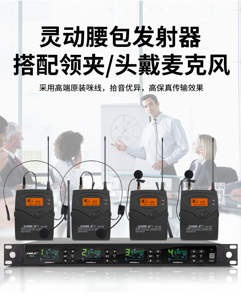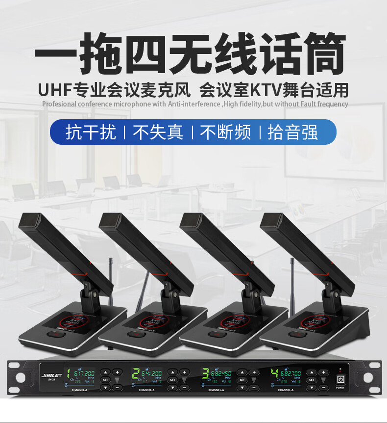 商品名称: 狮乐(SHILE)SH-26无线话筒一拖四U段可调频会议培训桌面话筒手持麦克风2手持2会议方管 SH-26/套