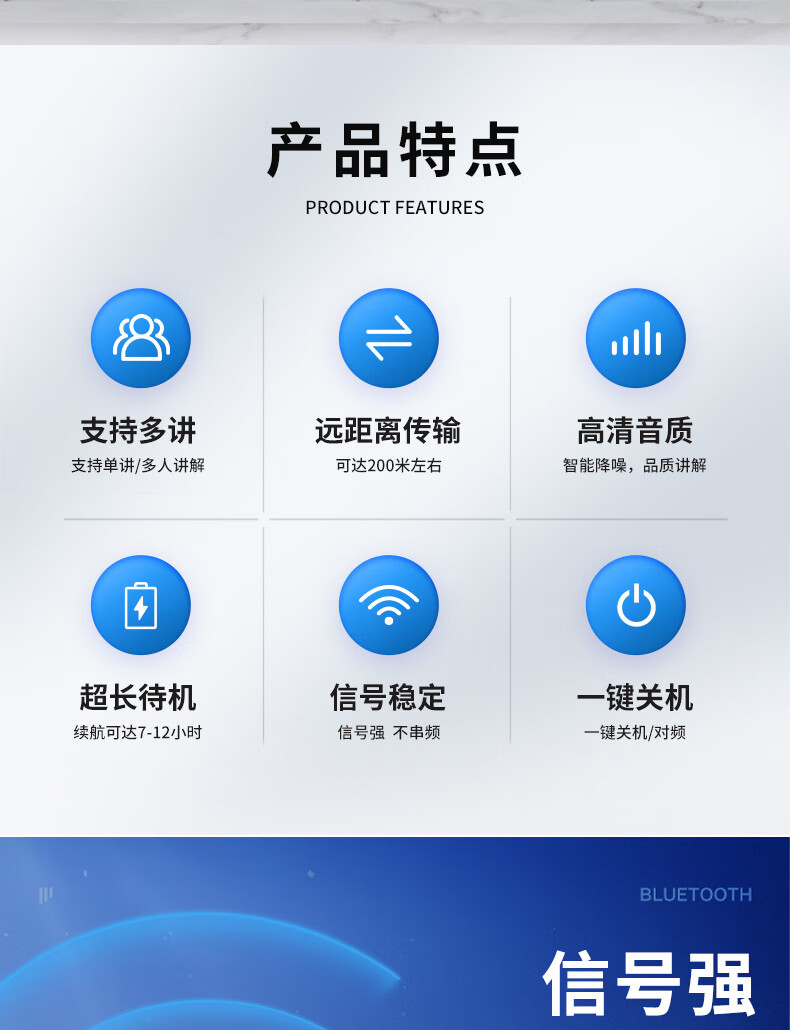 • 商品名称:比西特919R无线讲解耳麦一对多政企接待会议讲解器一键关机导游带团电子解说器 1讲+50人听团套装 919R/套