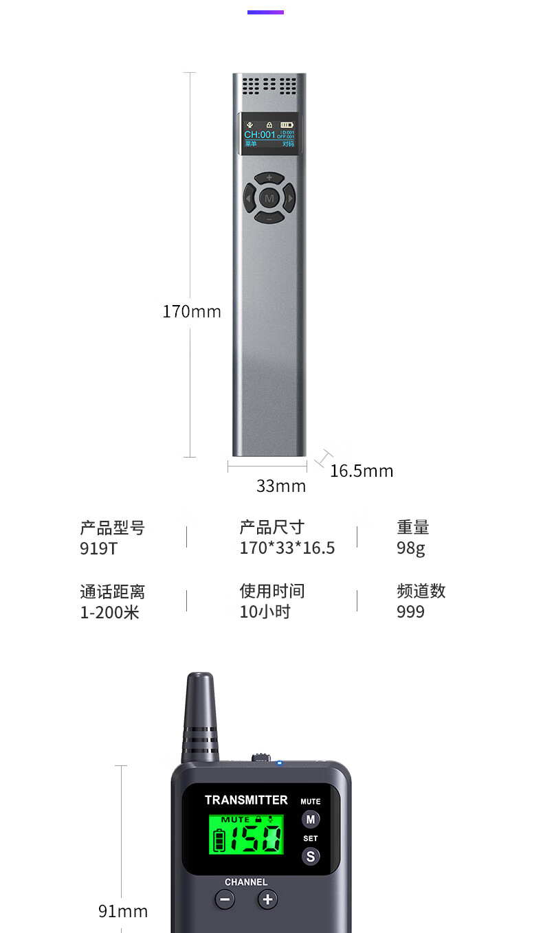 包装清单: 919T*1、919R*50、50位座充*1、收纳箱*1、配件:头戴麦*1、USB线*1、说明书*1、合格证保修卡*1