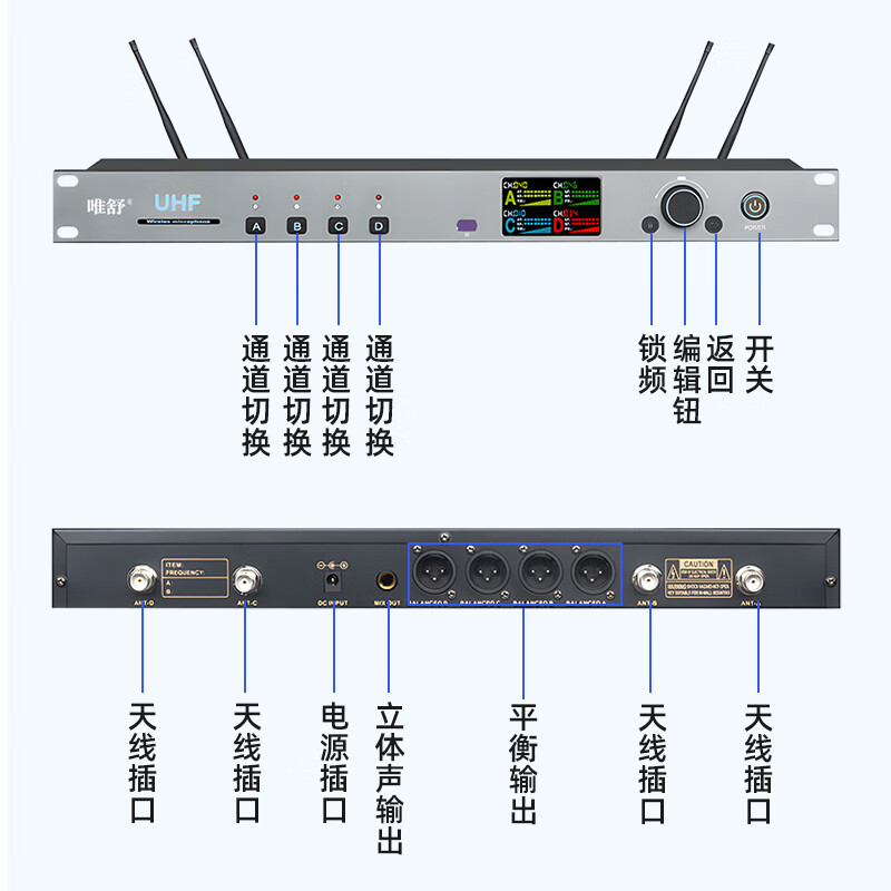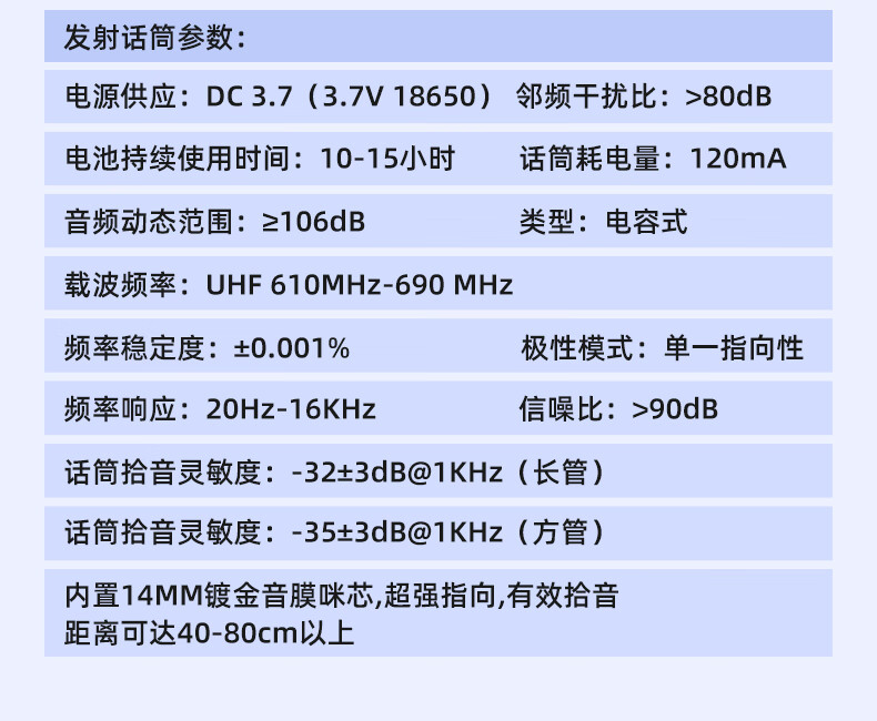 • 商品名称:唯舒WSDG-14S真分集方管麦克风200米远距离Type-C充电接口或装电池无线抗干扰话筒专业会议系统一拖四 WSDG-14S/套