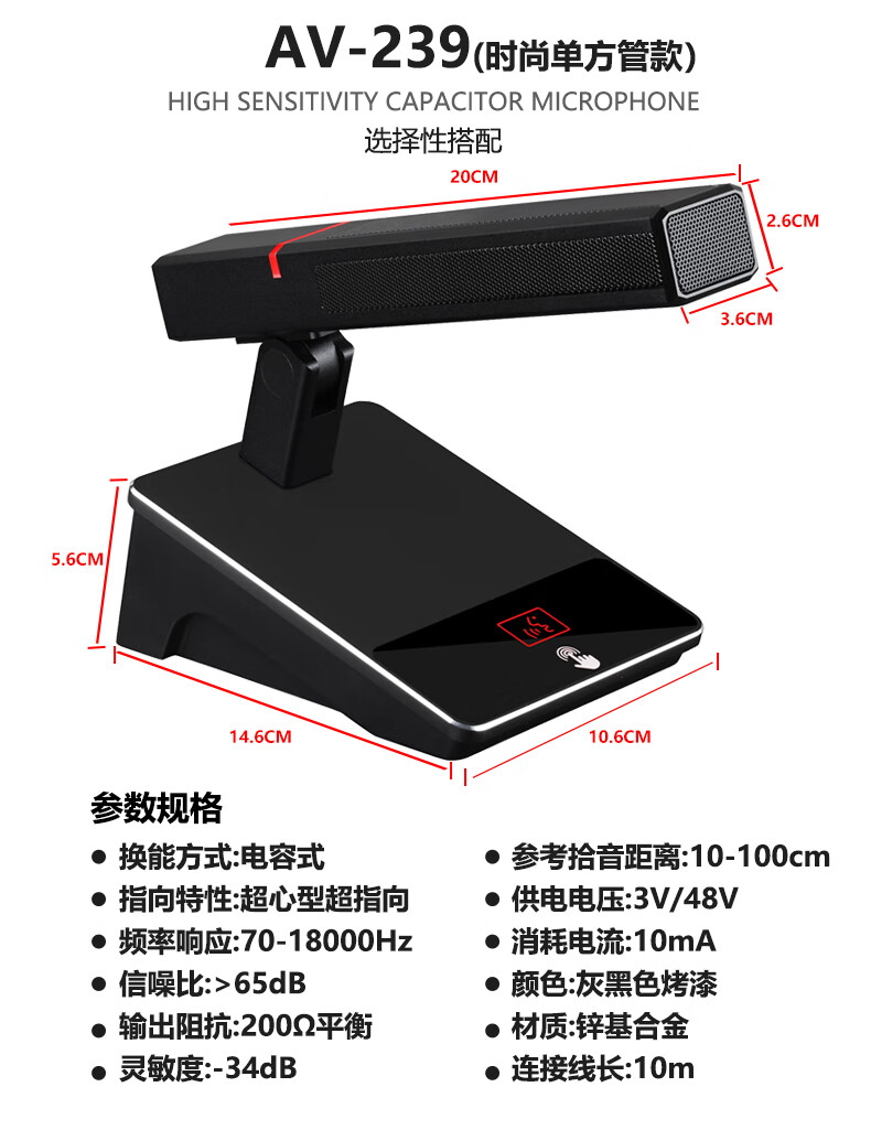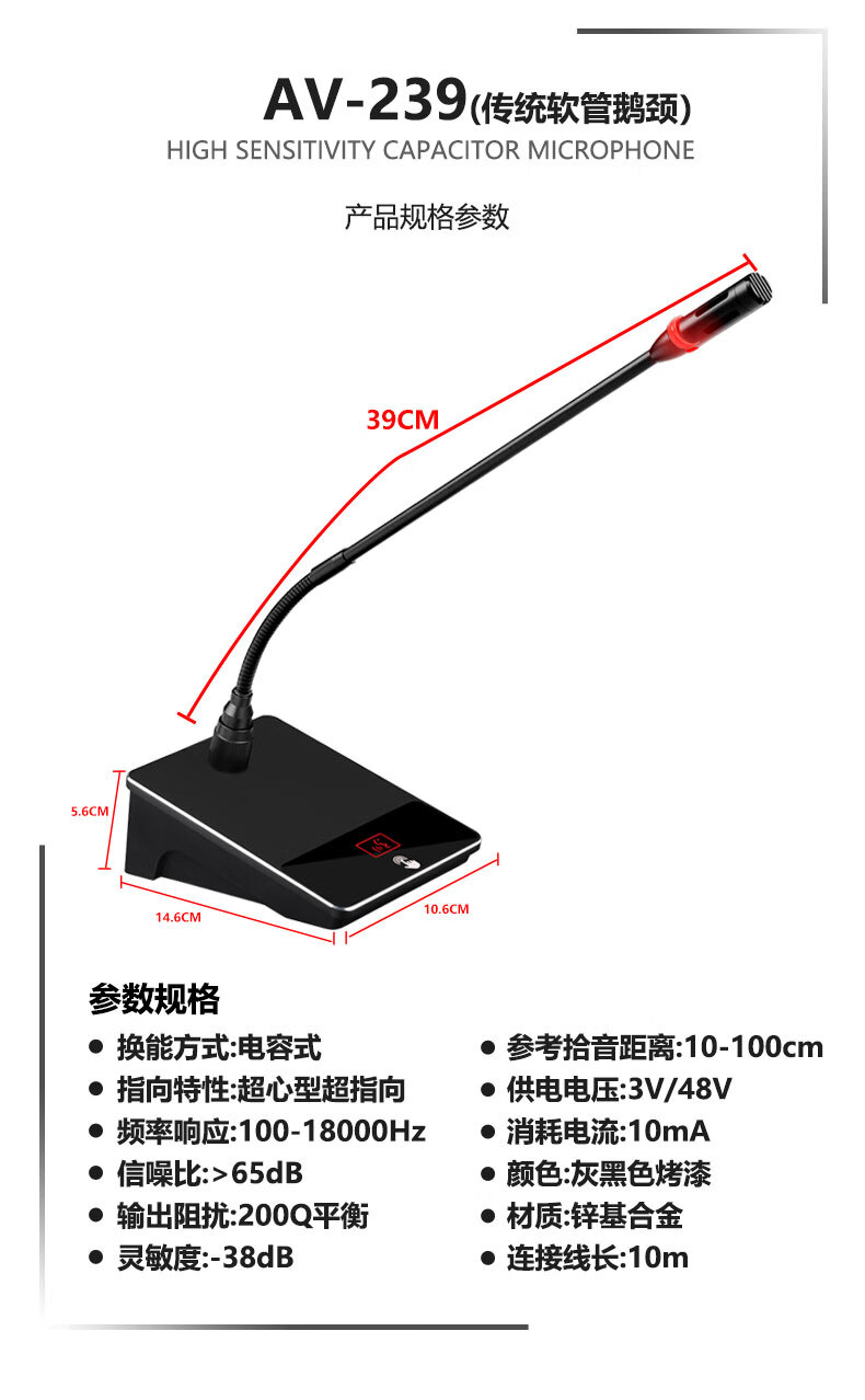 • 商品名称:舒乐迪(shuledi)国产化AV-239有线会议话筒麦克风 主持演讲麦调音台卡农头接功放电脑3V-48V供电双方管话筒单支 AV-239/套