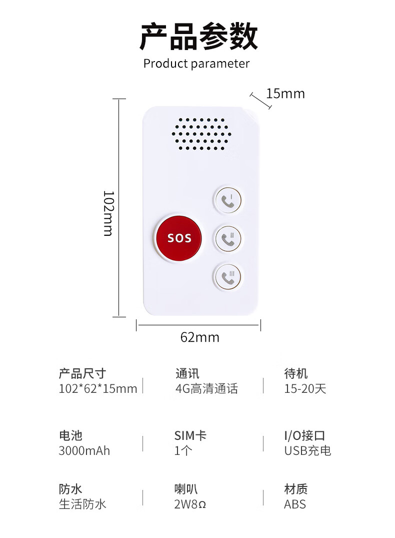 • 商品名称:山水间 老人报警器紧急呼叫器家用紧急护理手机一键打电话紧急求救器老人手机一键呼叫报警器一键拨打手机 K3 K3/套