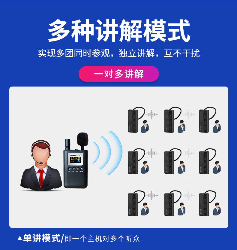 商品名称: 比西特无线讲解器一对多导游无线解说器高端会议工厂参观政企接待团队讲解电子导览系统 增加1个耳机 6101R/套