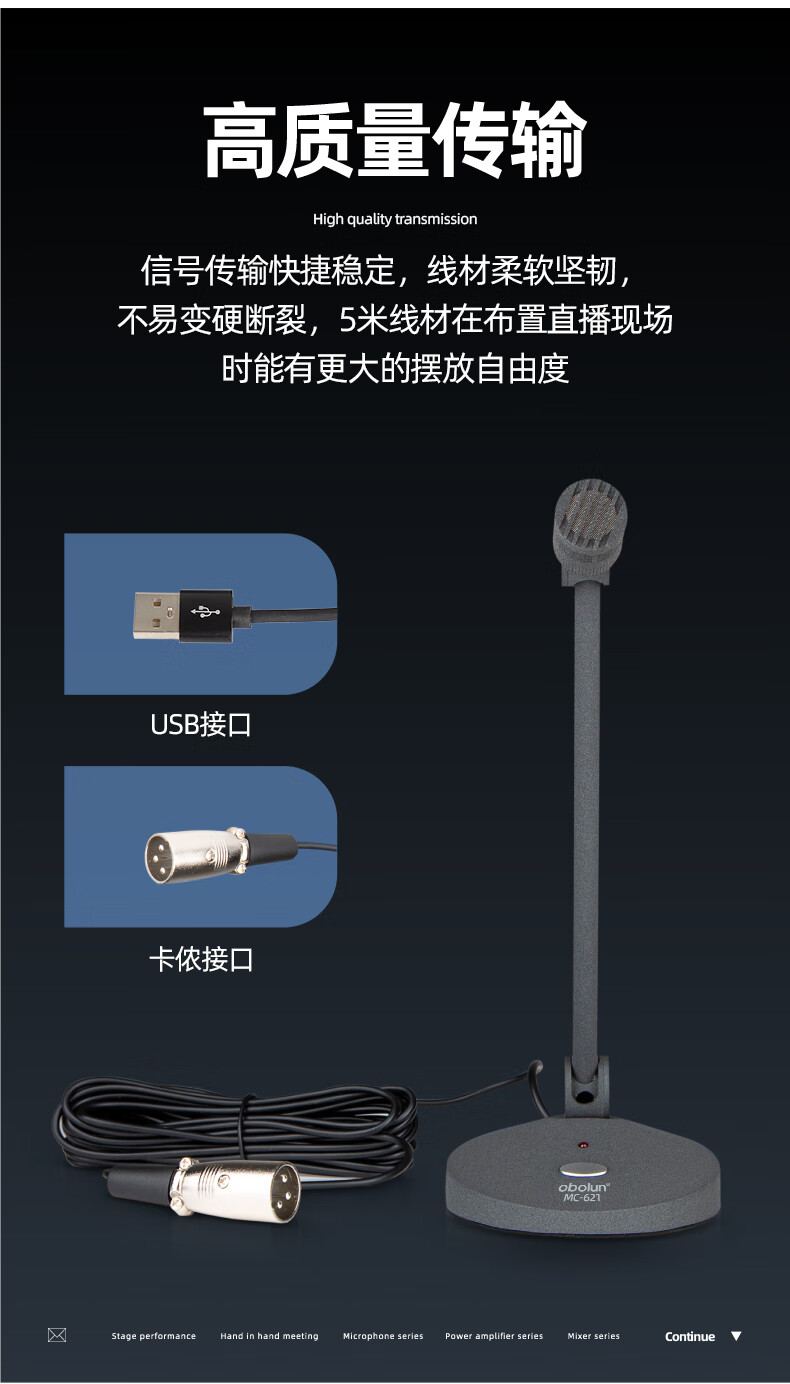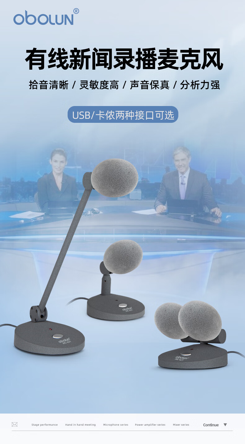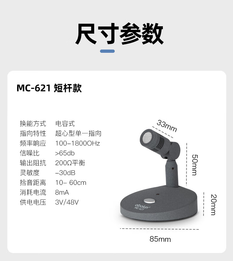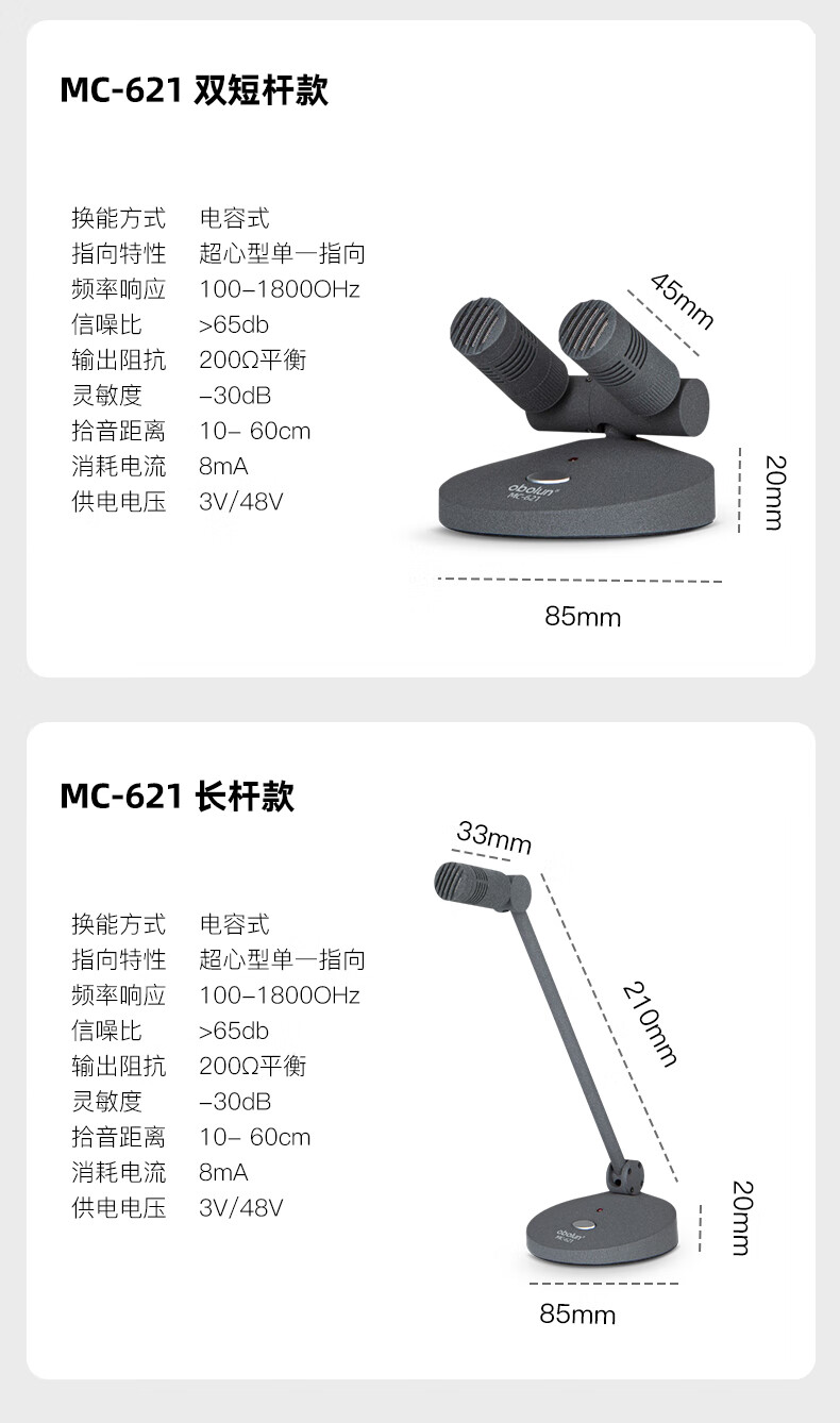 • 商品名称:欧莱声(obolun)MC-621新闻直播有线麦克风桌面录音鹅颈会议室系统主持访谈演讲采访USB话筒 MC-621/支