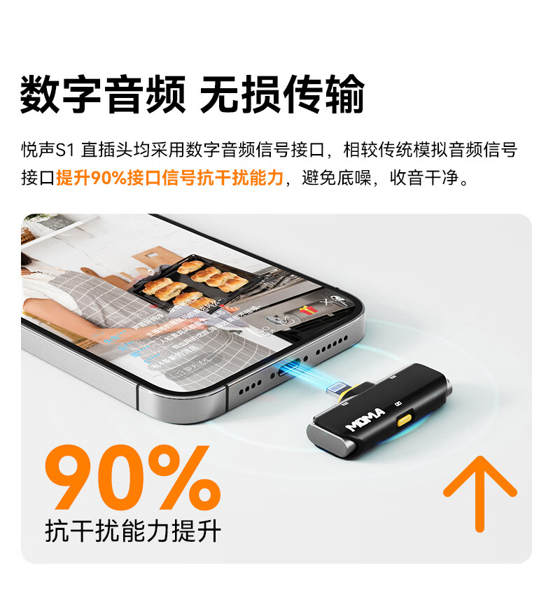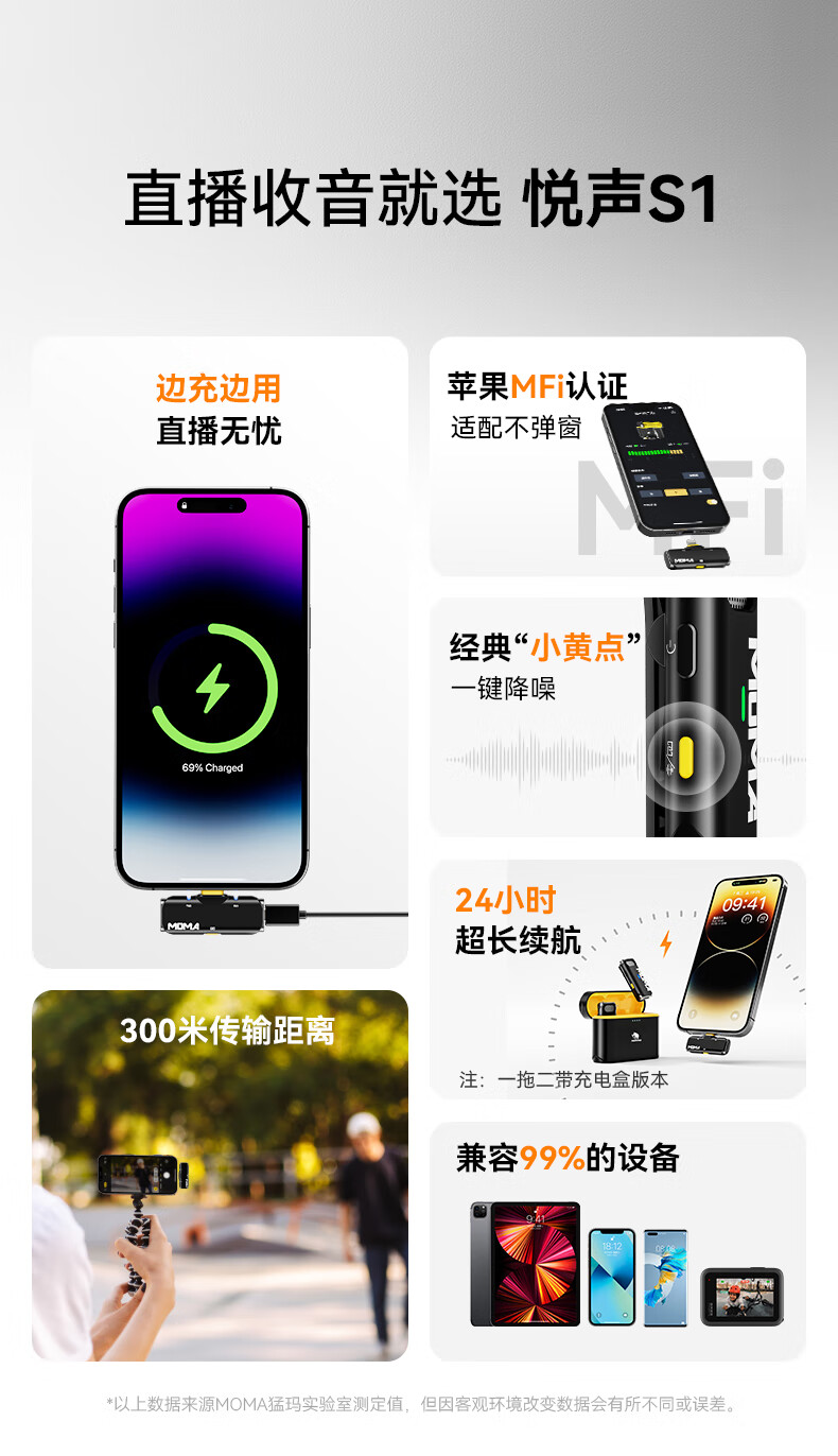 商品名称: 猛玛悦声S1无线领夹麦克风 苹果手机直播MOMA猛犸s1一拖二话筒vlog户外采访录音声卡降噪长续航收音麦 悦声 S1/件