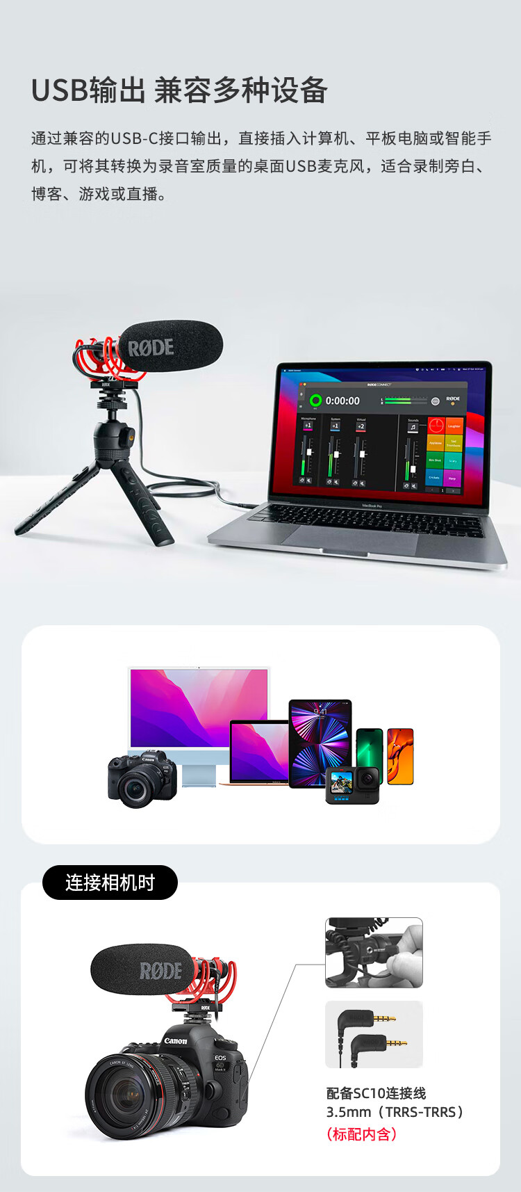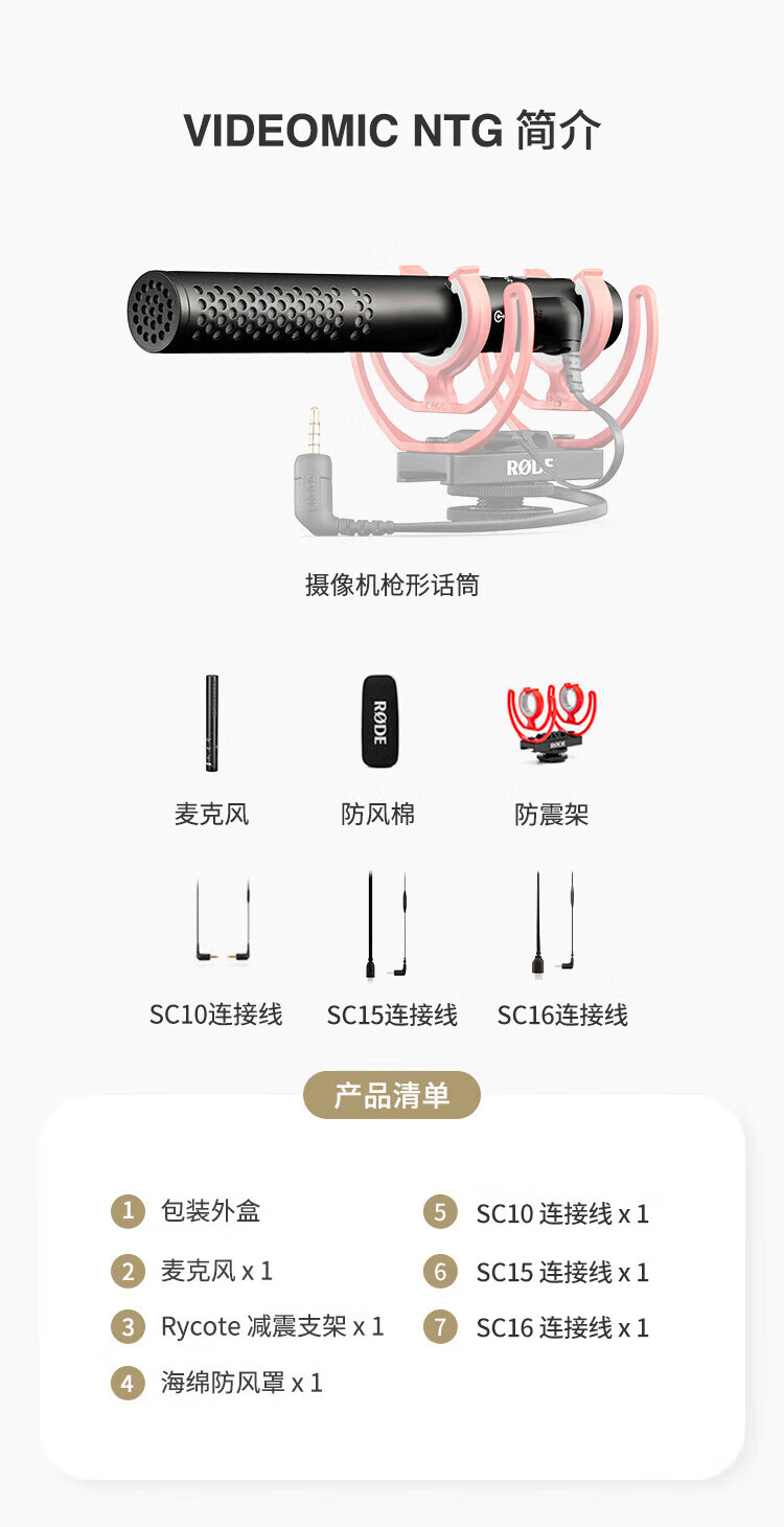 • 商品名称:RODE 罗德 VideoMic NTG 枪式麦克风直播录音采访VLOG相机手机专业指向性收音话筒(官方标配) VideoMic NTG/个