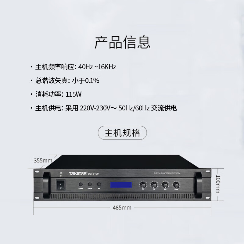 • 商品名称:得胜(TAKSTAR)DG-S100 桌面式手拉手会议系统 有线手拉手会议系统 控制代表单元 主机(台) DG-S100/台