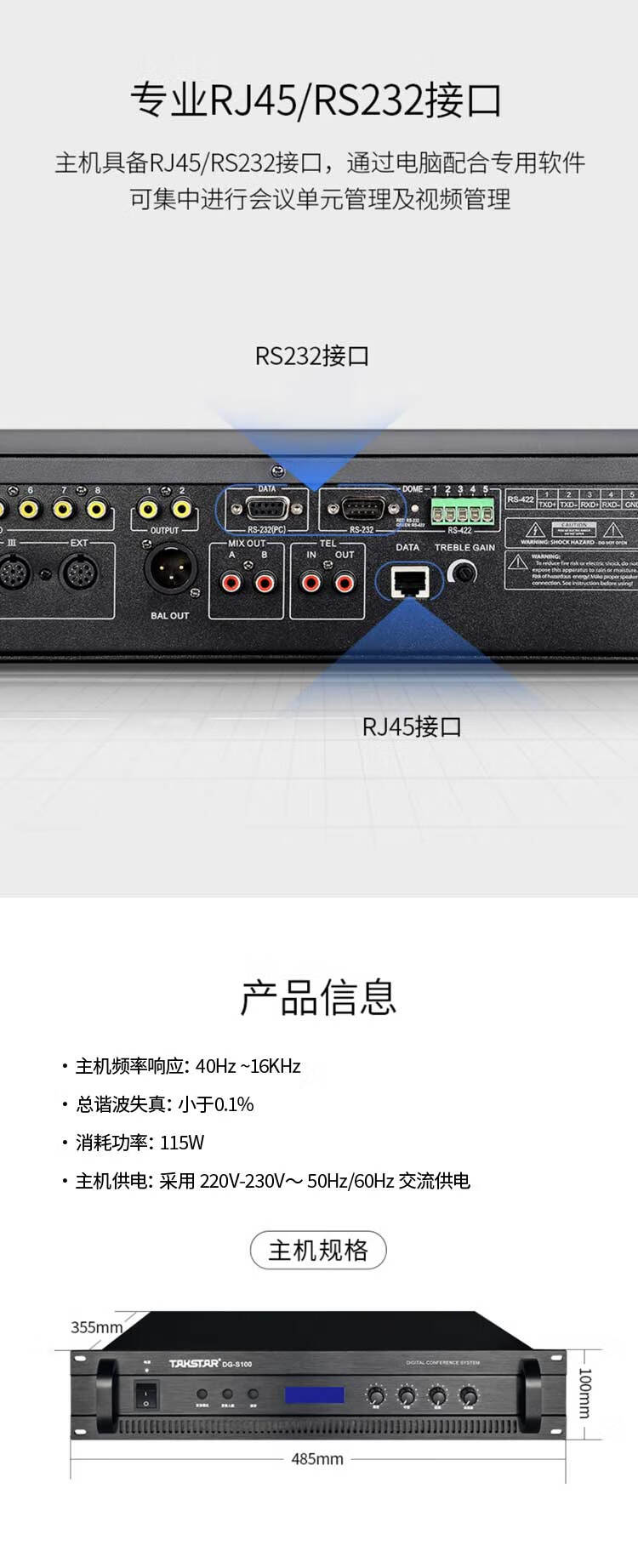 商品名称: 得胜(TAKSTAR)DG-S100 桌面式手拉手会议系统 有线手拉手会议系统 控制代表单元 主机(台) DG-S100/台