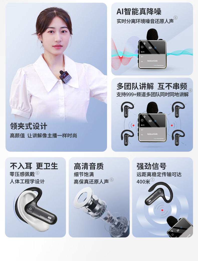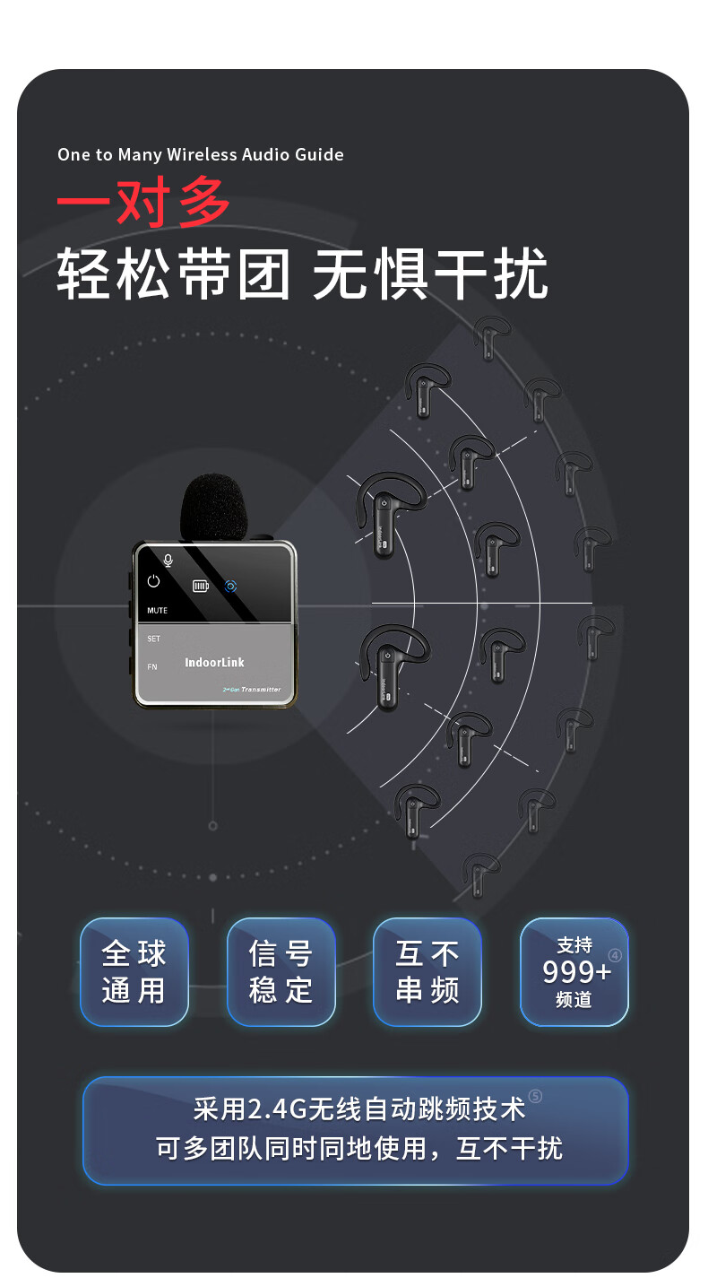 数码  > 影音娱乐  > 麦克风  >  IndoorLink  >  IndoorLink无线讲解器一对多政企接待商务接待项目考察 工厂参观团队讲解博物馆展馆纪念馆讲解设备 1对20 SCHL-E103/箱