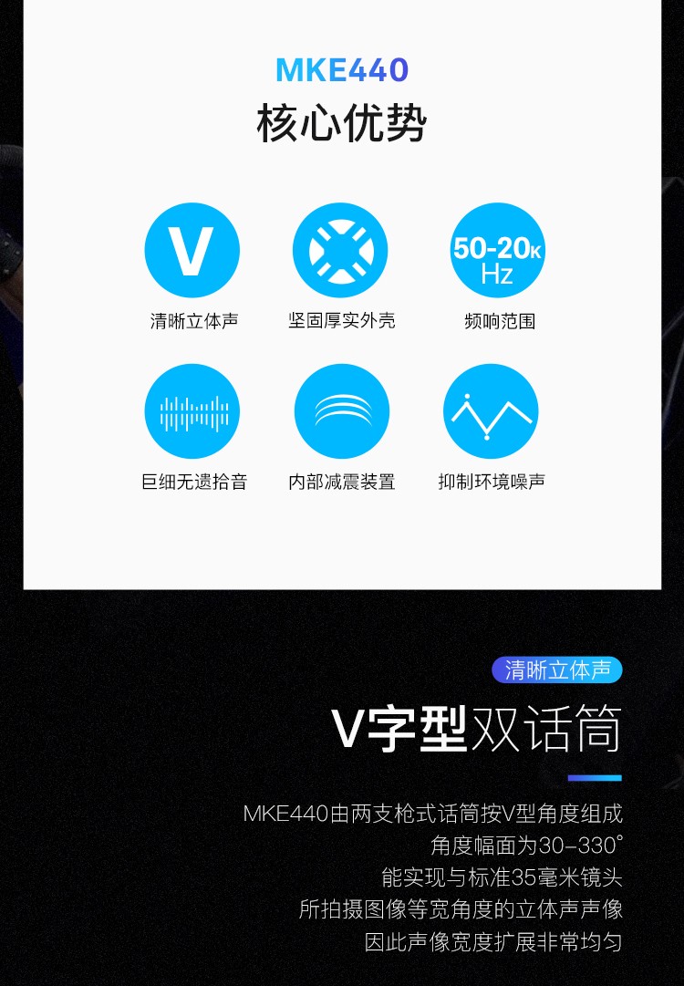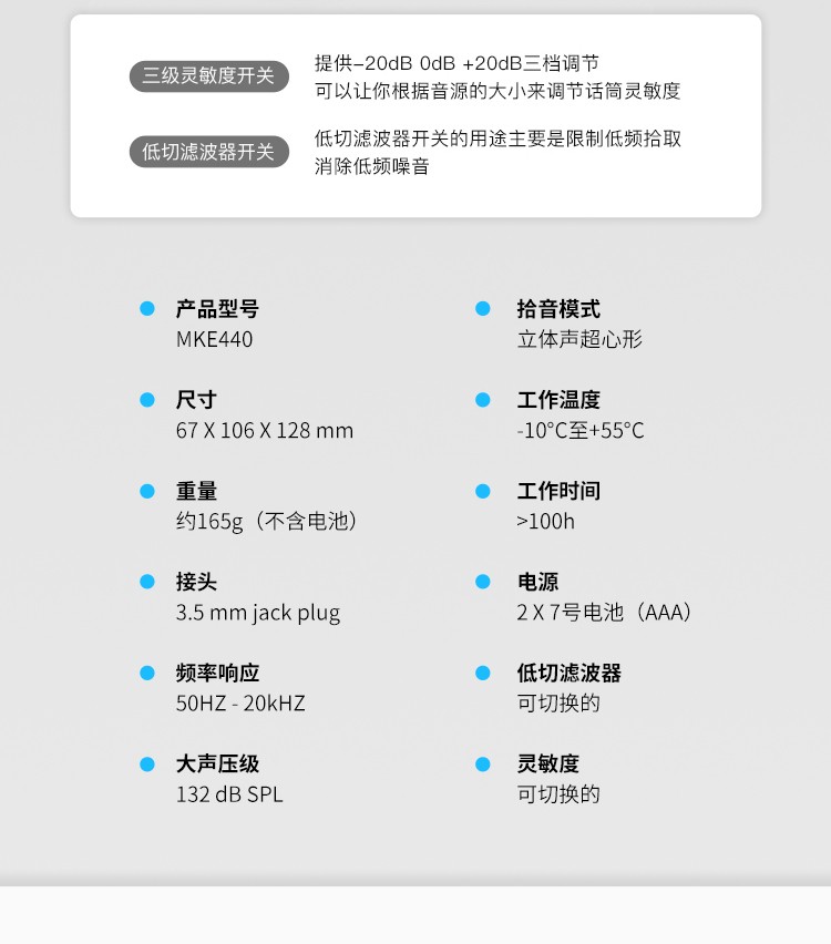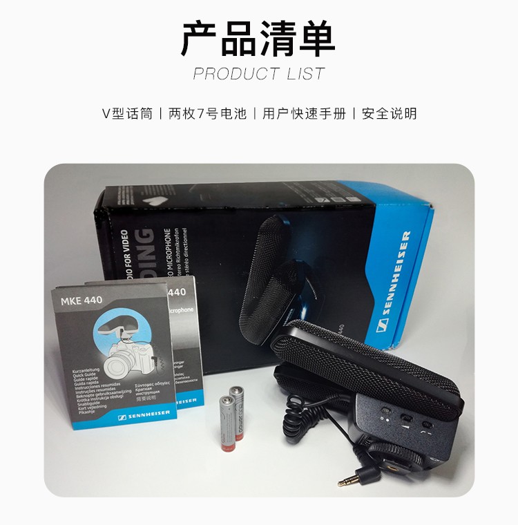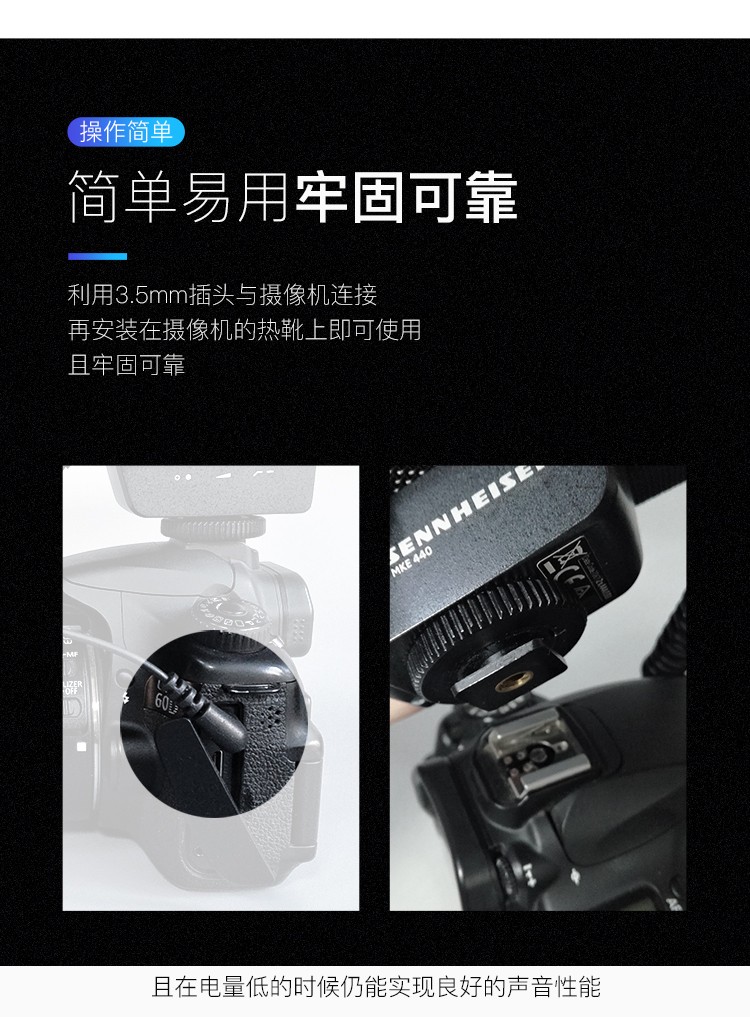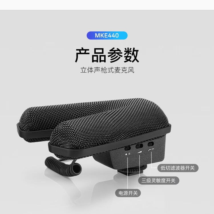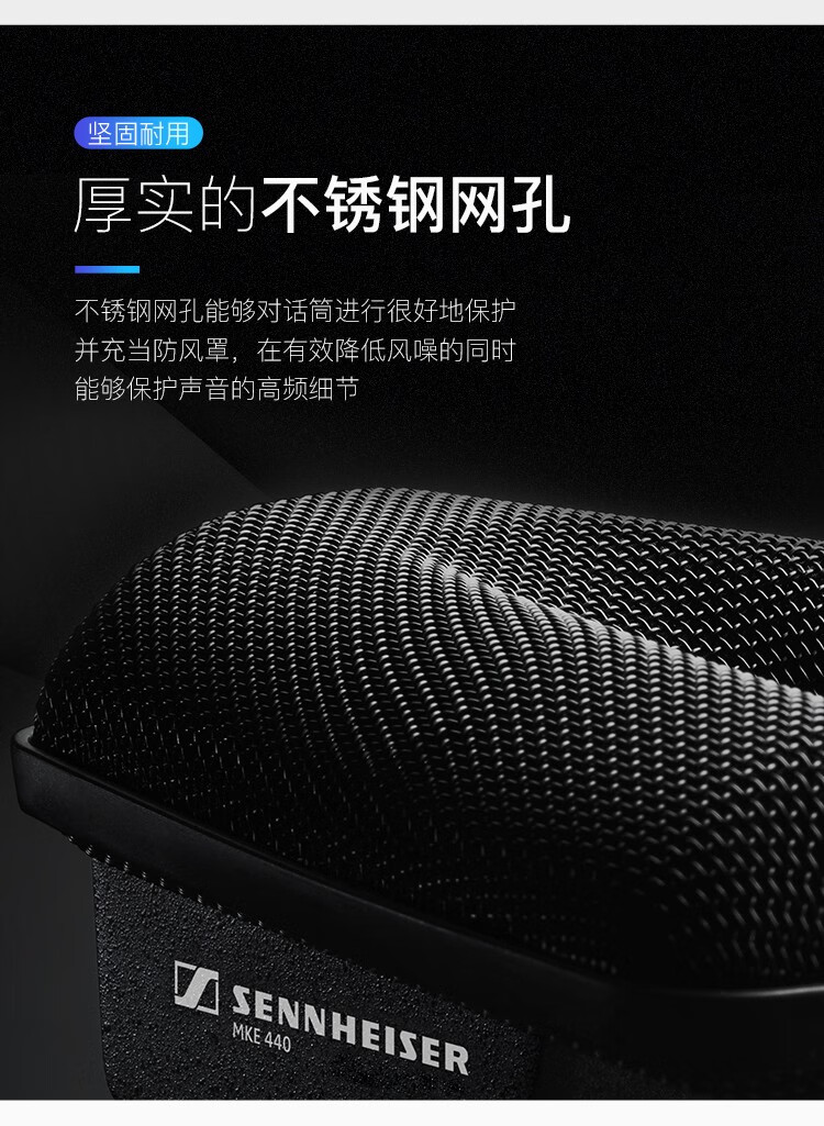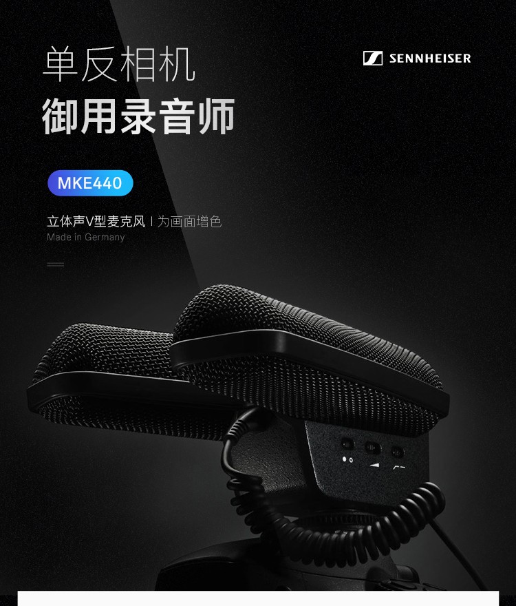 • 商品名称:森海塞尔(Sennheiser)MKE440 立体声短枪话筒 直播麦克风摄像机单反vlog录音主播短视频收音麦克风 MKE440/台
