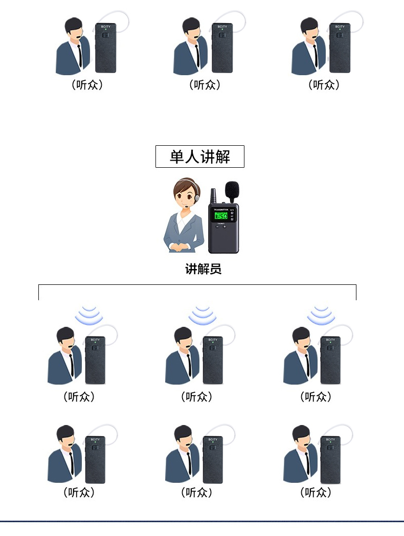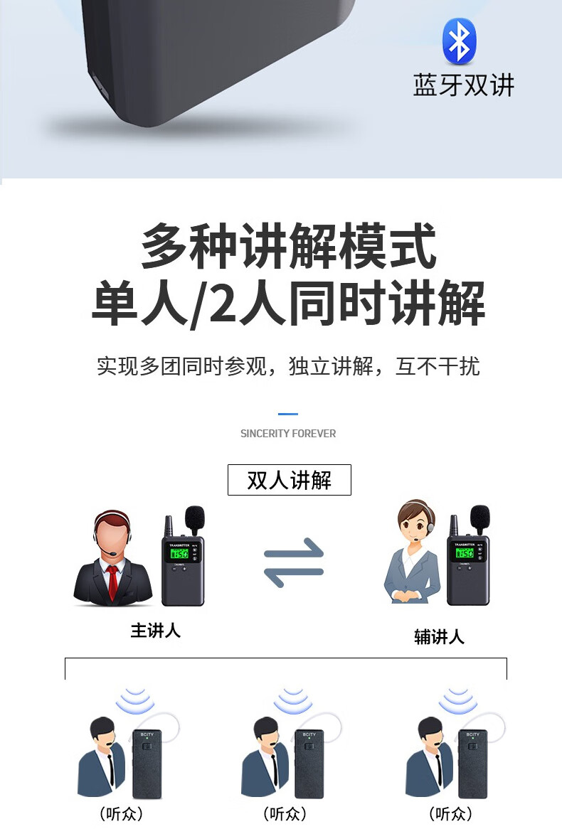 比西特 无线讲解器一对多解说器同声传译耳机bcity711R讲解器培训会议工厂参观 双讲+10人听+10位座充+收纳箱 711R套装/箱