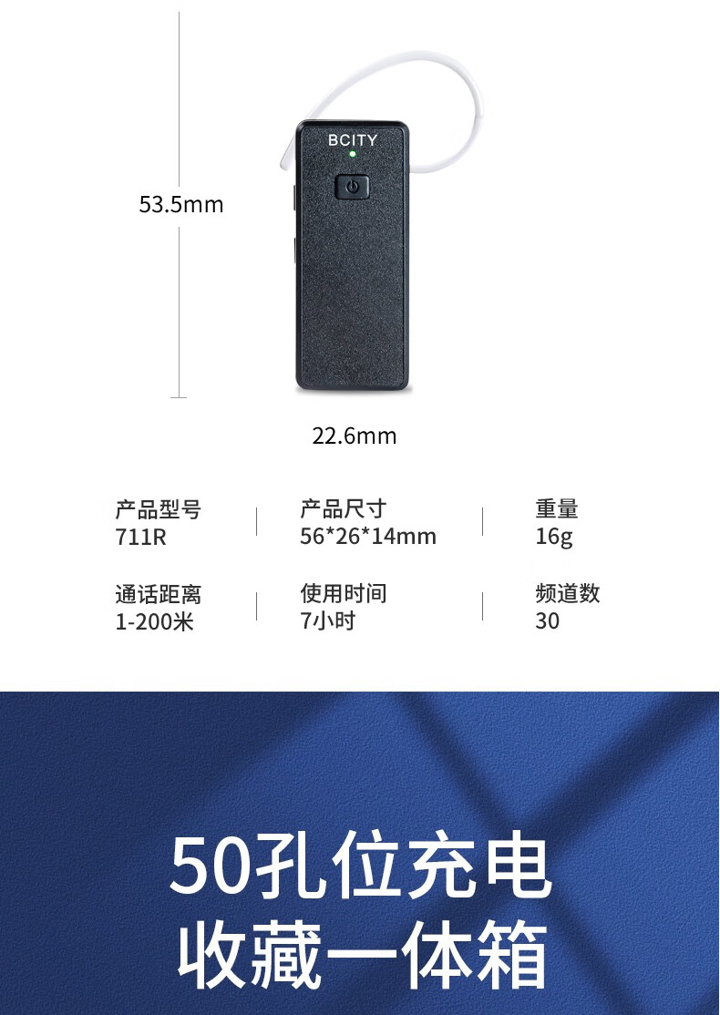 • 商品名称:比西特 无线讲解器一对多解说器同声传译耳机bcity711R讲解器培训会议工厂参观 双讲+10人听+10位座充+收纳箱 711R套装/箱