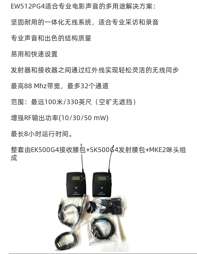 商品名称: 森海塞尔(Sennheiser)EW512PG4 EW500 BOOM FILM无线麦克风采访话筒 EW 500 BOOM G4 EW 512P G4/套