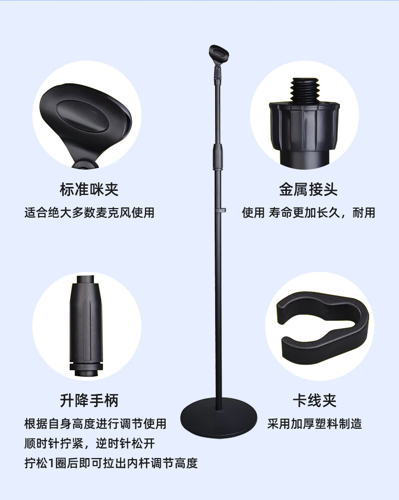 • 商品名称:唯舒WS-13专业麦克风落地支架1.8米高度可调伸缩话筒支架设备KTV舞台演讲通用麦架 WS-13/个