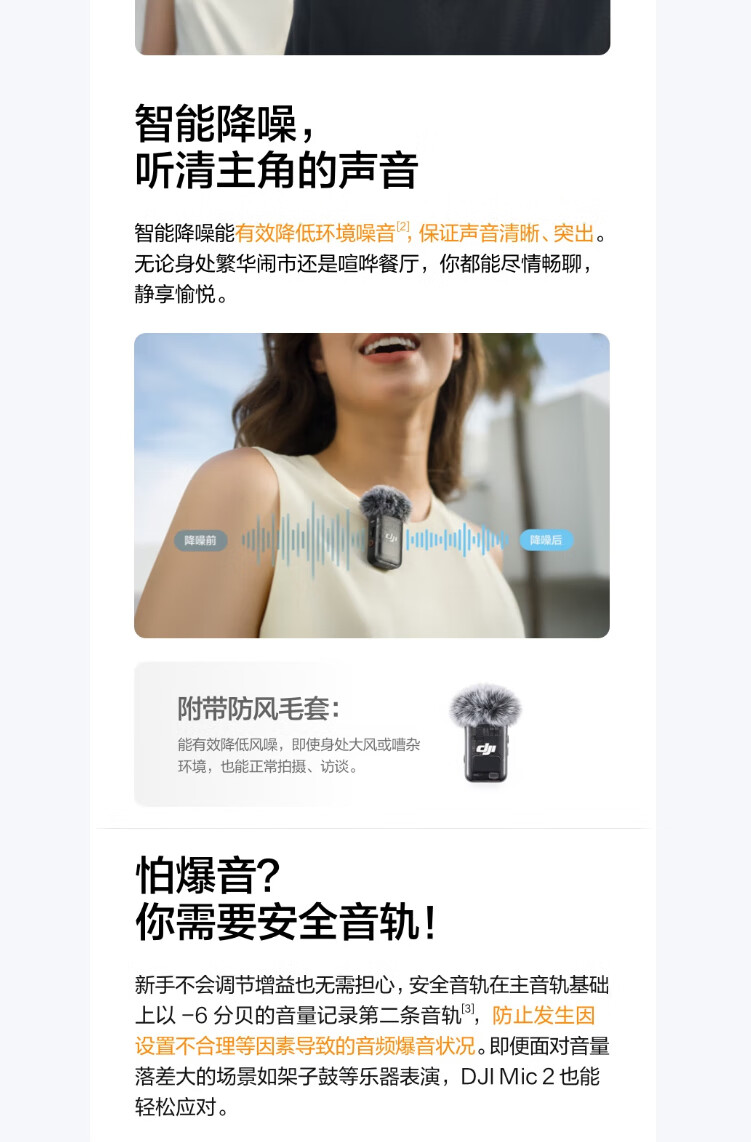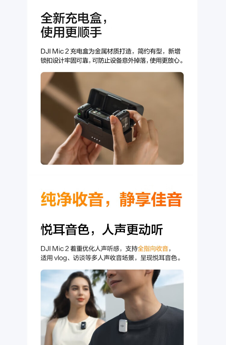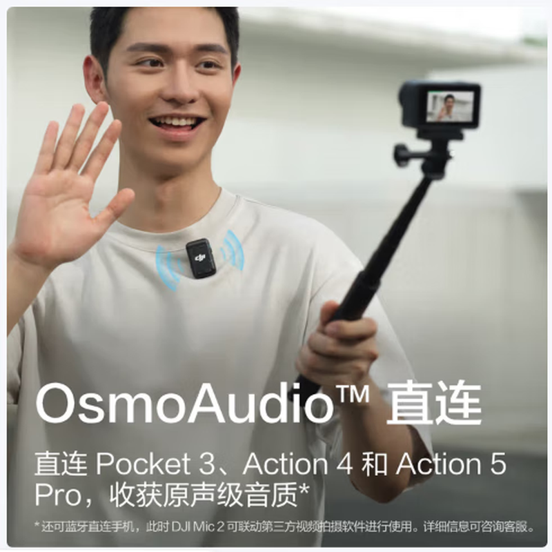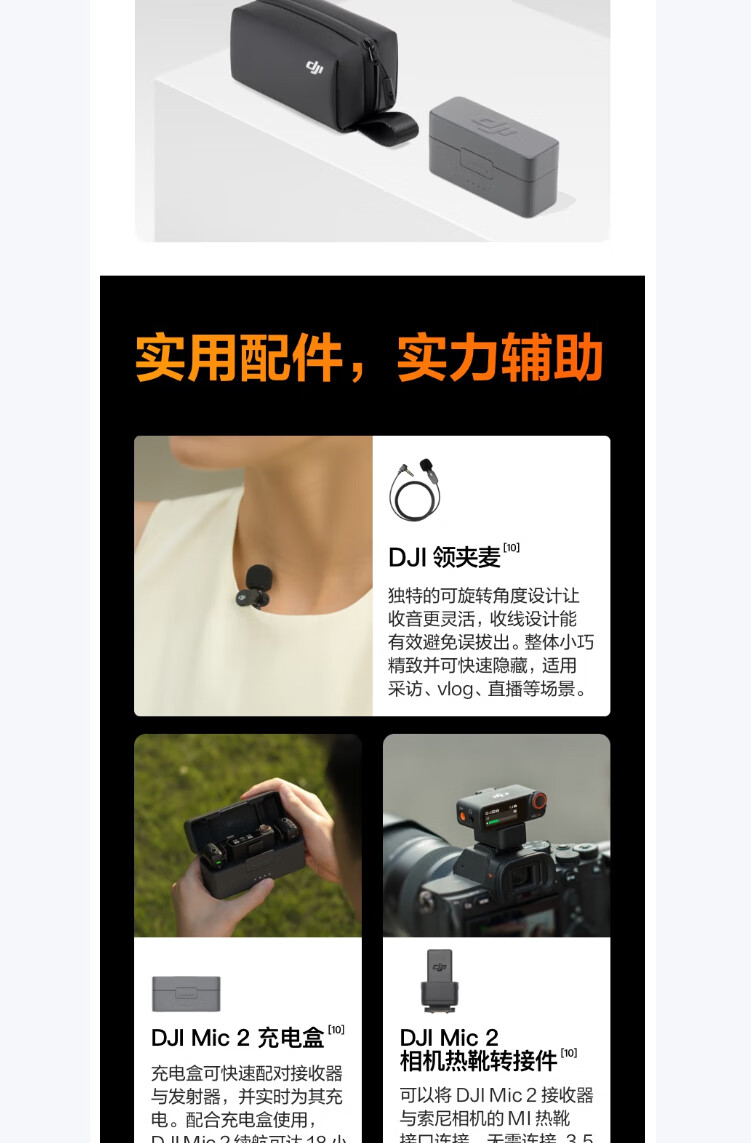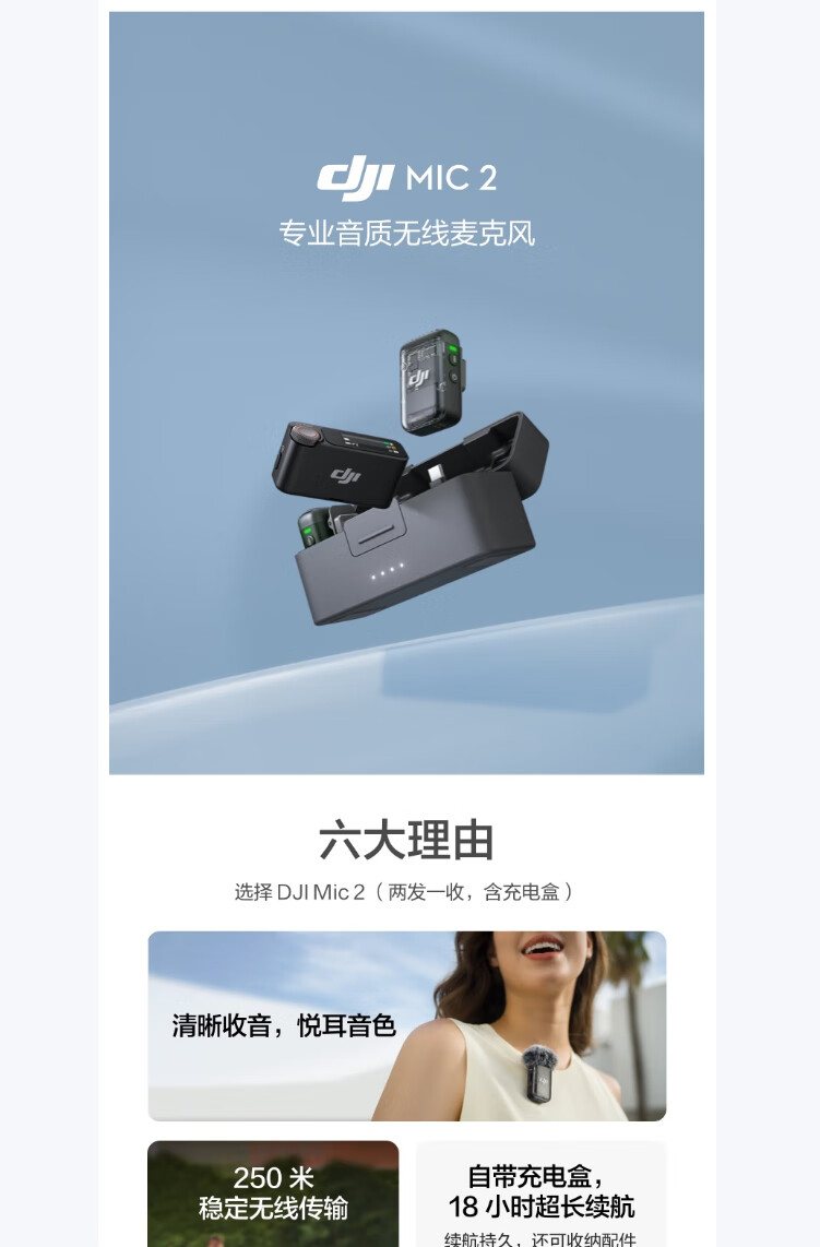 商品名称: 大疆大疆 Mic 2(一发一收) 专业音质无线麦克风 直播降噪收音麦 手机相机一拖一领夹麦 DJI Mic 2/件