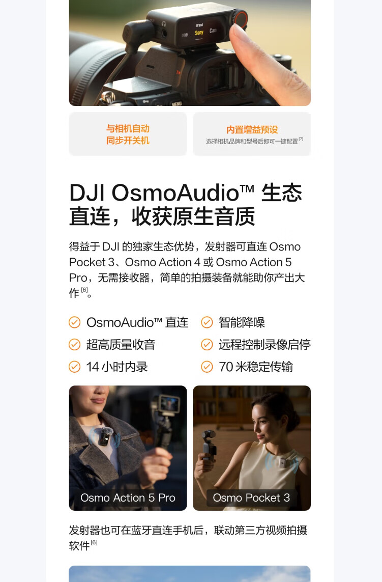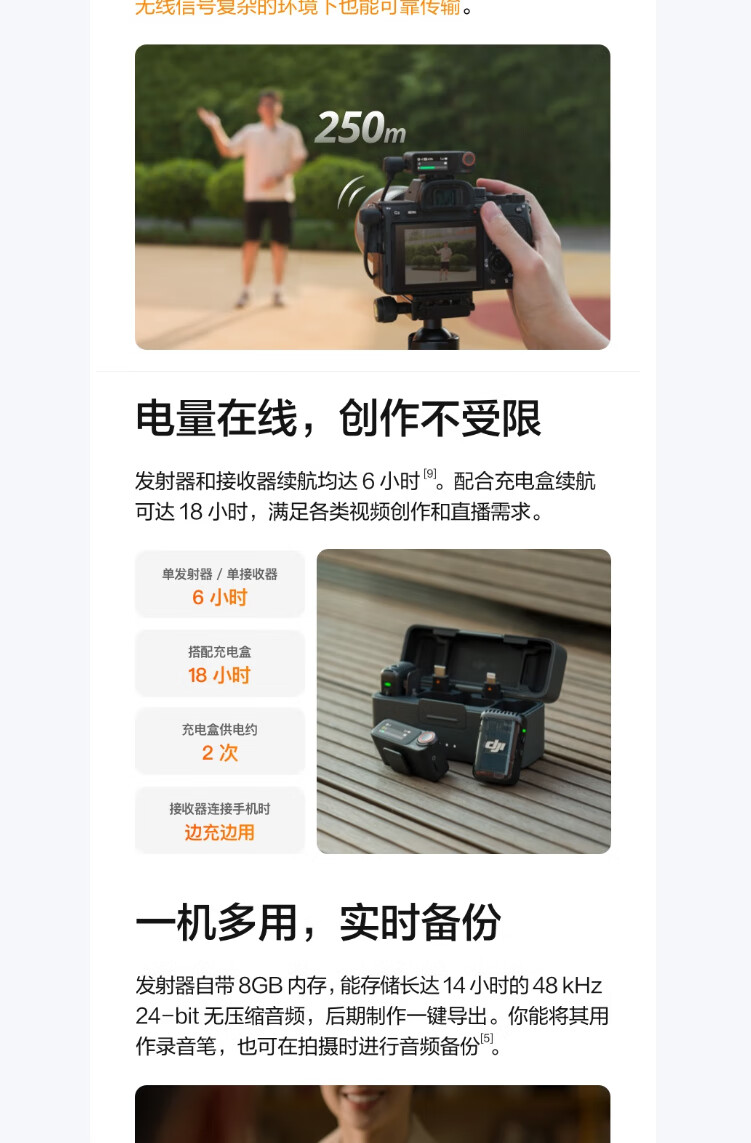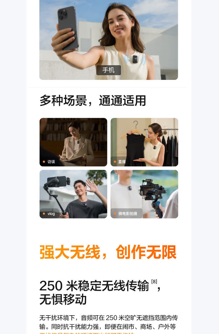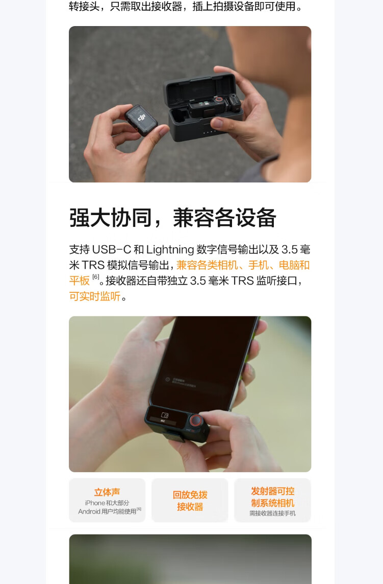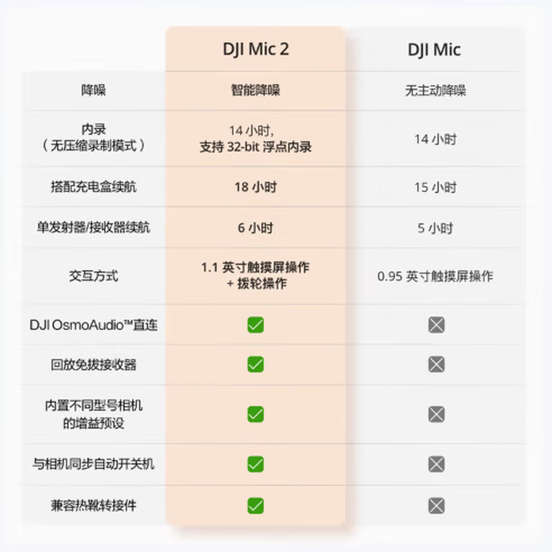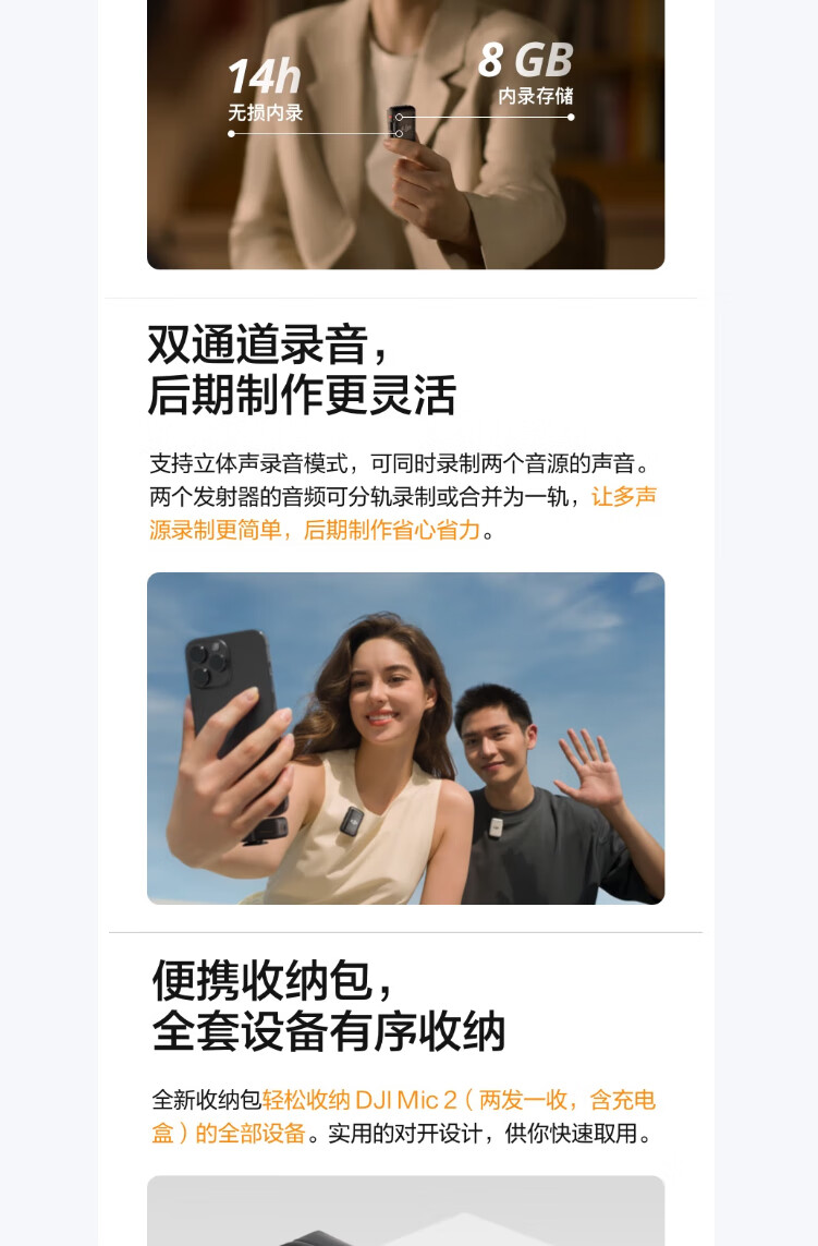 商品名称: 大疆大疆 Mic 2(一发一收) 专业音质无线麦克风 直播降噪收音麦 手机相机一拖一领夹麦 DJI Mic 2/件