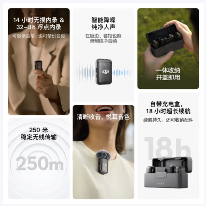 大疆大疆 Mic 2(一发一收) 专业音质无线麦克风 直播降噪收音麦 手机相机一拖一领夹麦 DJI Mic 2/件