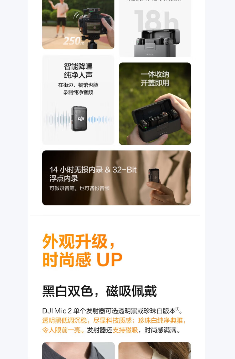 • 商品名称:大疆大疆 Mic 2(一发一收) 专业音质无线麦克风 直播降噪收音麦 手机相机一拖一领夹麦 DJI Mic 2/件
