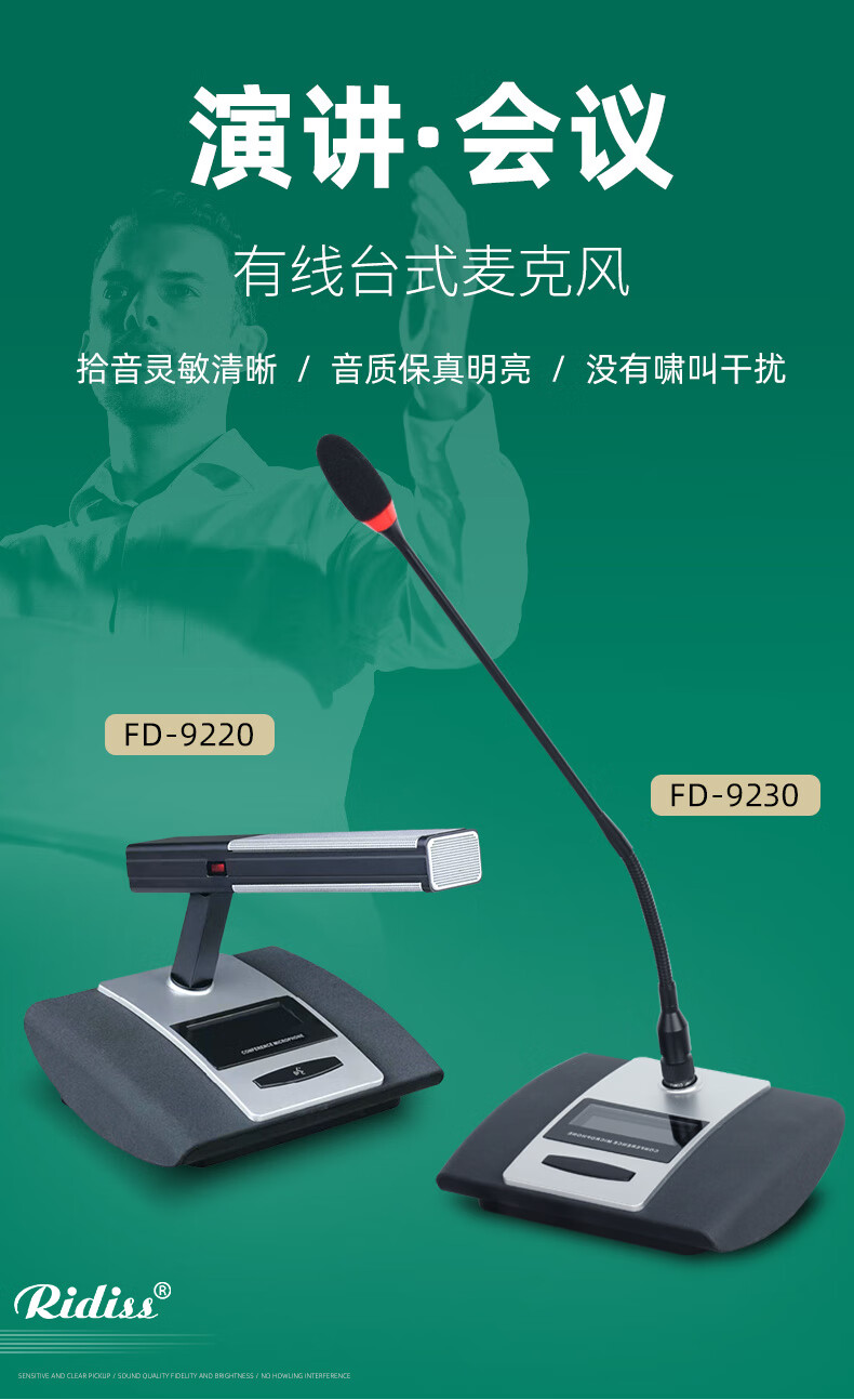 • 商品名称:Ridiss FD9220有线电容会议麦克风带48V工程鹅颈长杆话筒方管短杆会议有线话筒 FD9220/支