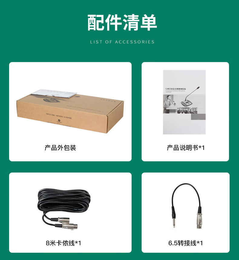 包装清单: 保修卡,合格证,说明书,连接线,麦克风