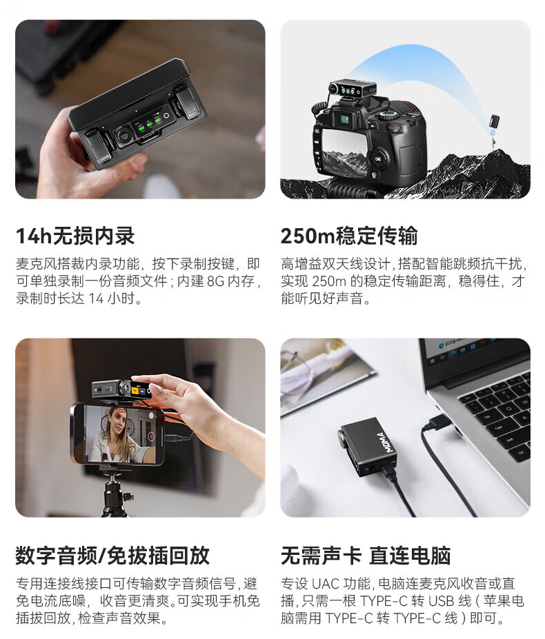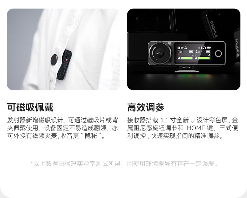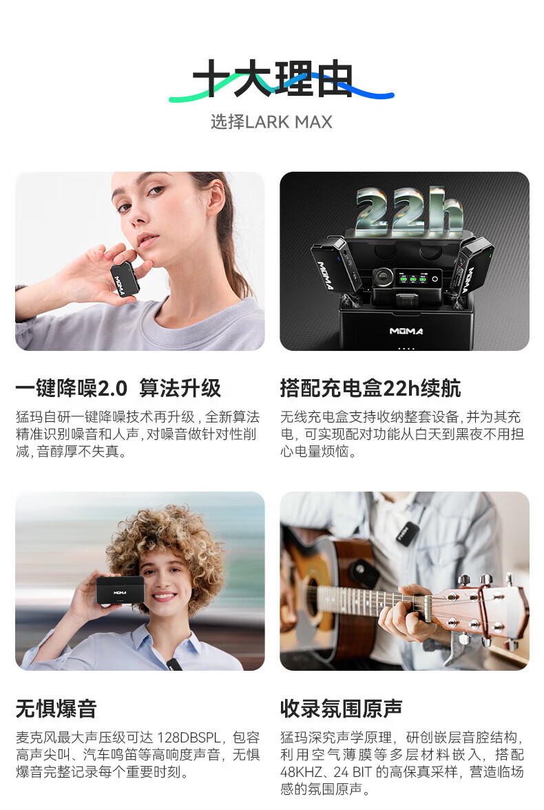 商品名称: 猛玛(MOMA)Lark Max一拖二无线领夹麦克风猛犸单反手机直播vlog视频户外采访收音麦 Lark Max/个