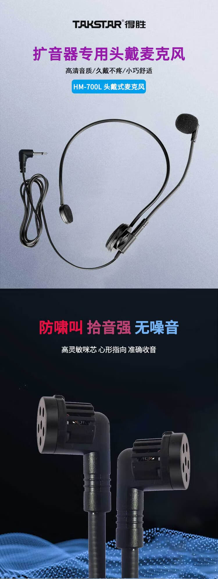 • 商品名称:得胜(TAKSTAR)头戴式麦克风演讲教学导游宣传演出 搭配扩音器无线麦克风使用 HM-700L SM-18 PRO/台