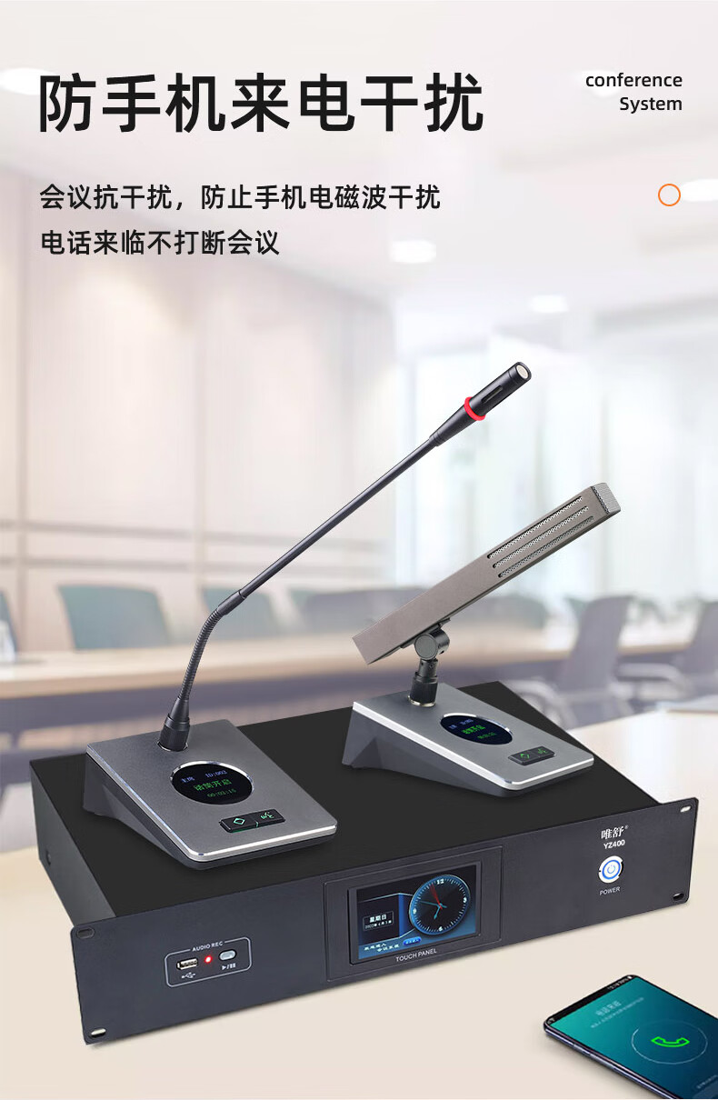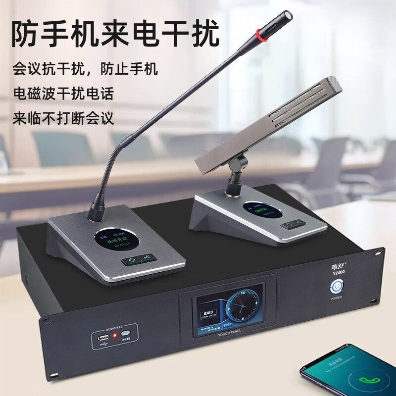 数码  > 影音娱乐  > 麦克风  >  唯舒  >  唯舒YZ400-5 有线手拉手会议系统麦克风专业高保真音质支持多种会议模式短杆方管电容话筒 1拖8 YZ400/套