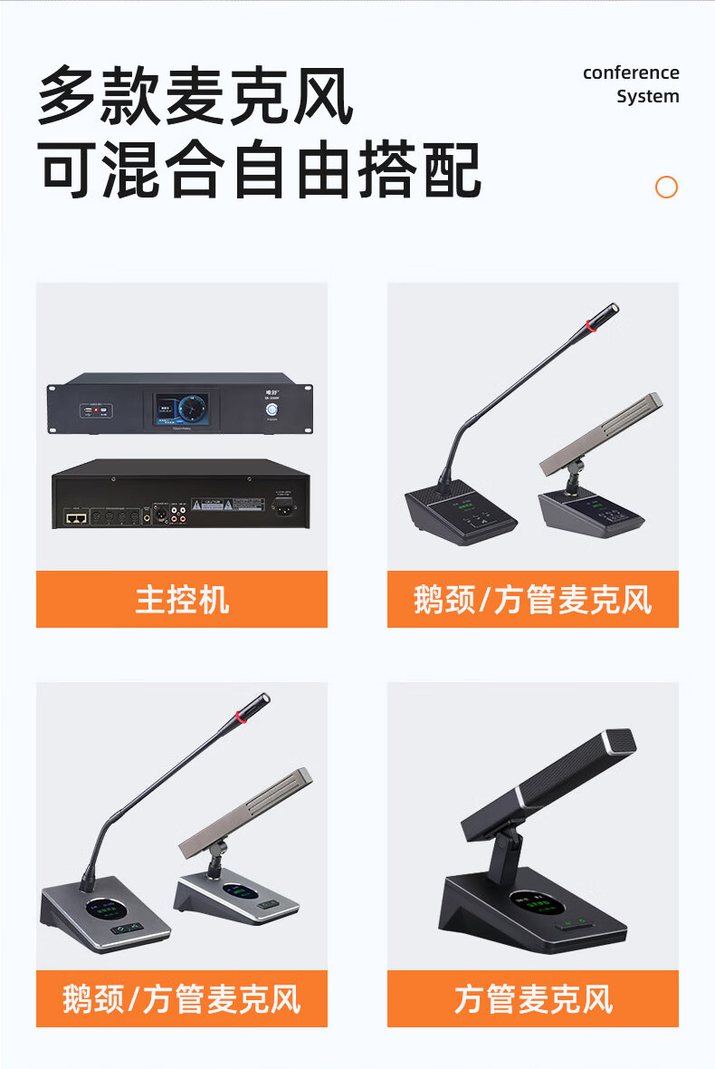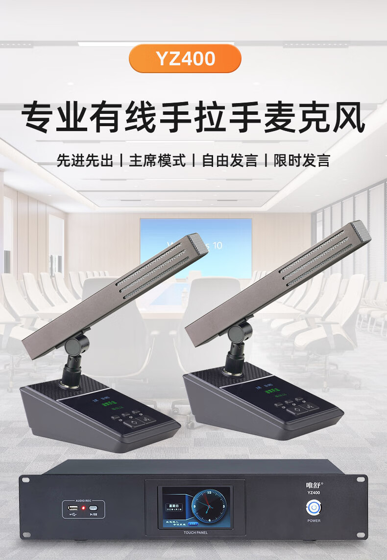 • 商品名称:唯舒YZ400-5 有线手拉手会议系统麦克风专业高保真音质支持多种会议模式短杆方管电容话筒 1拖8 YZ400/套