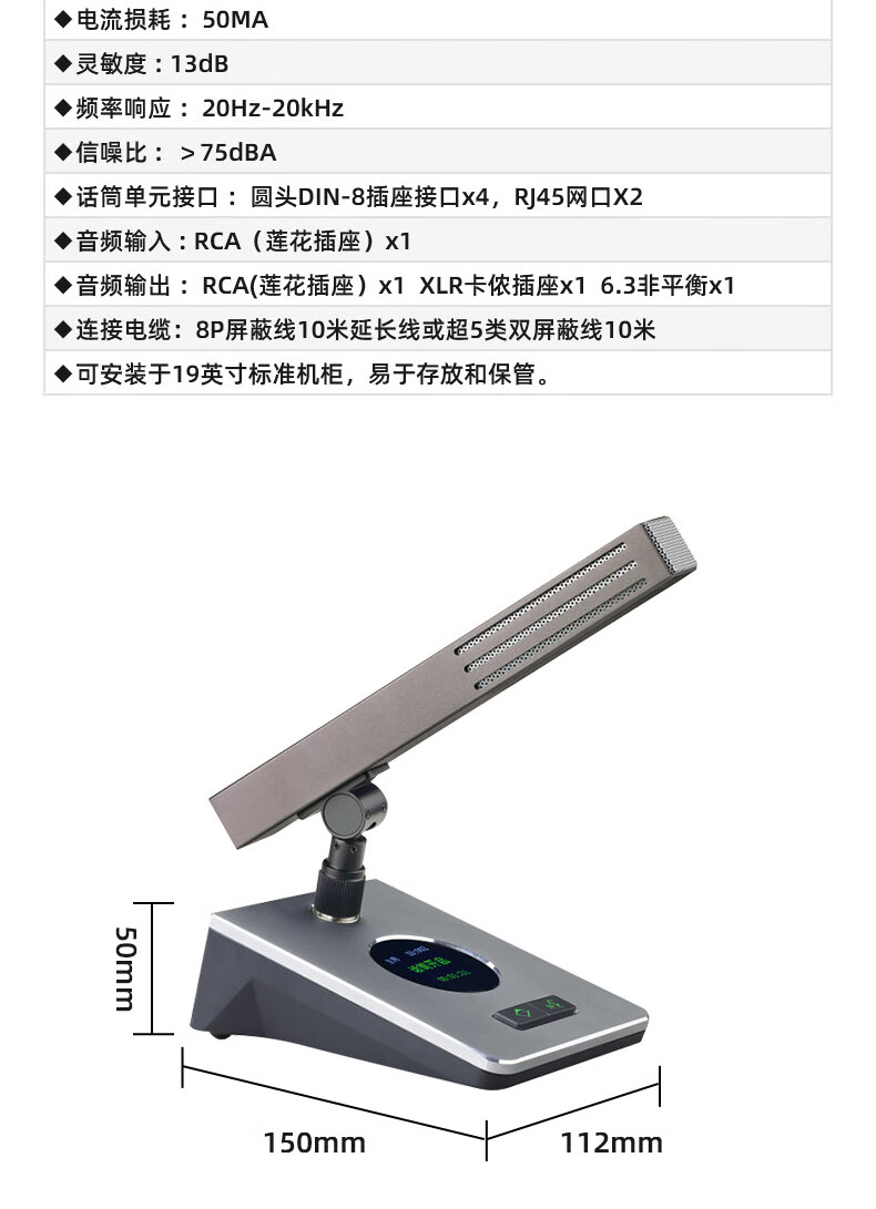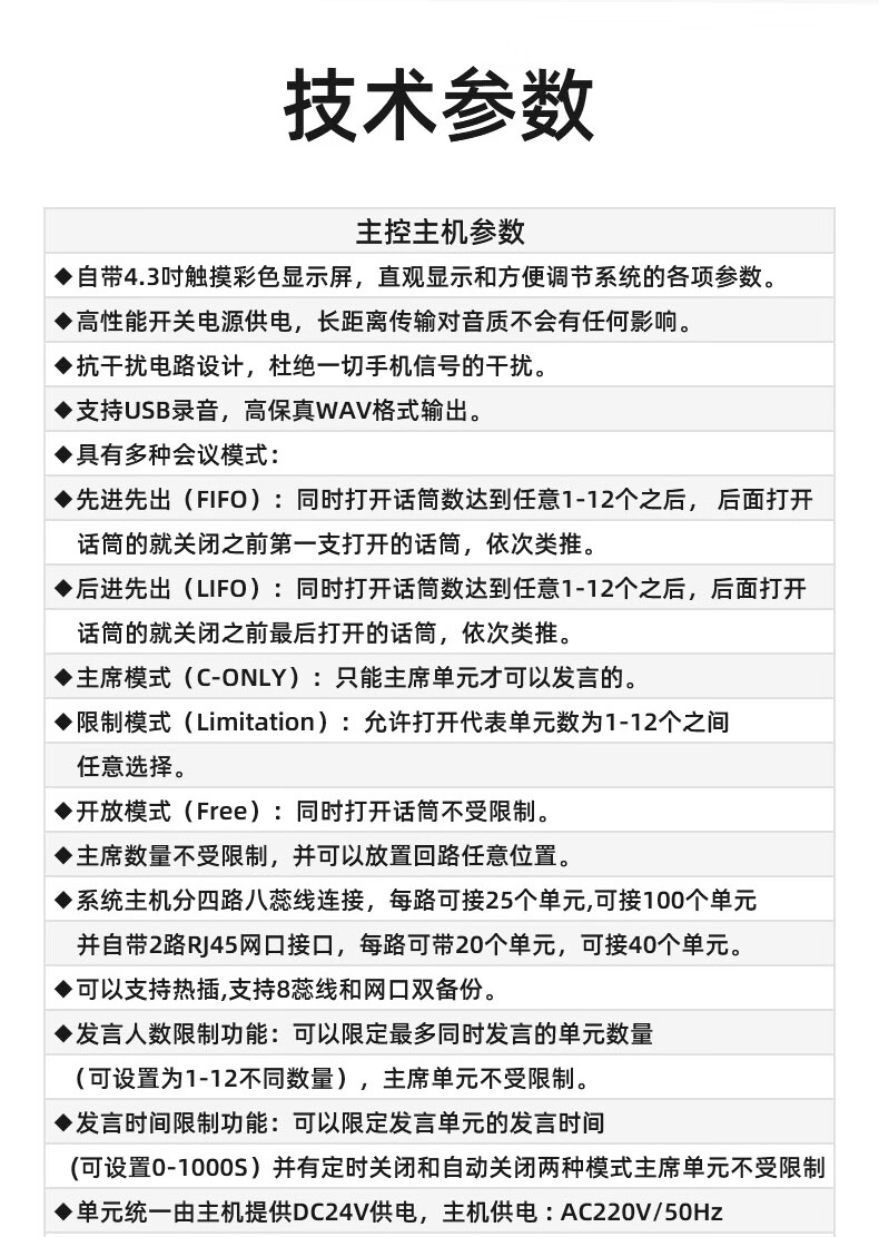 包装清单: 主机×1台、话筒×8只、合格证、保修卡、说明书