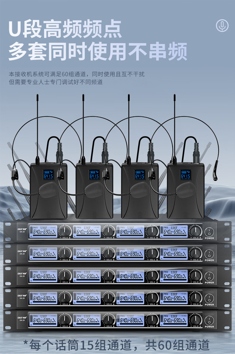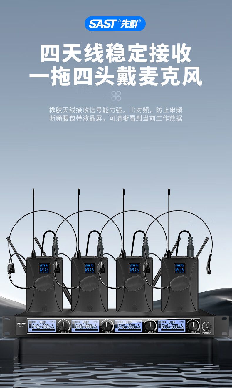 • 商品名称:先科(SAST)ok-29 无线麦克风话筒 一拖四教学音响音箱调音台功放收音家用娱乐U段麦克风 头戴款 OK-120/箱