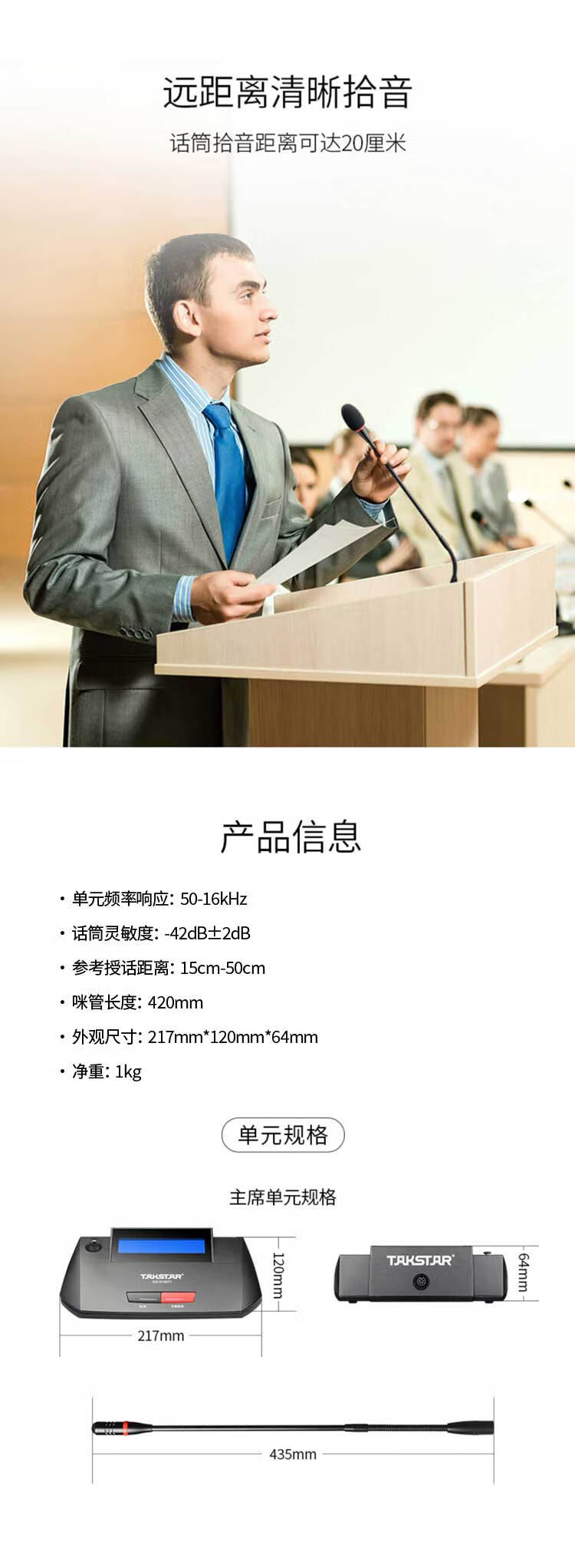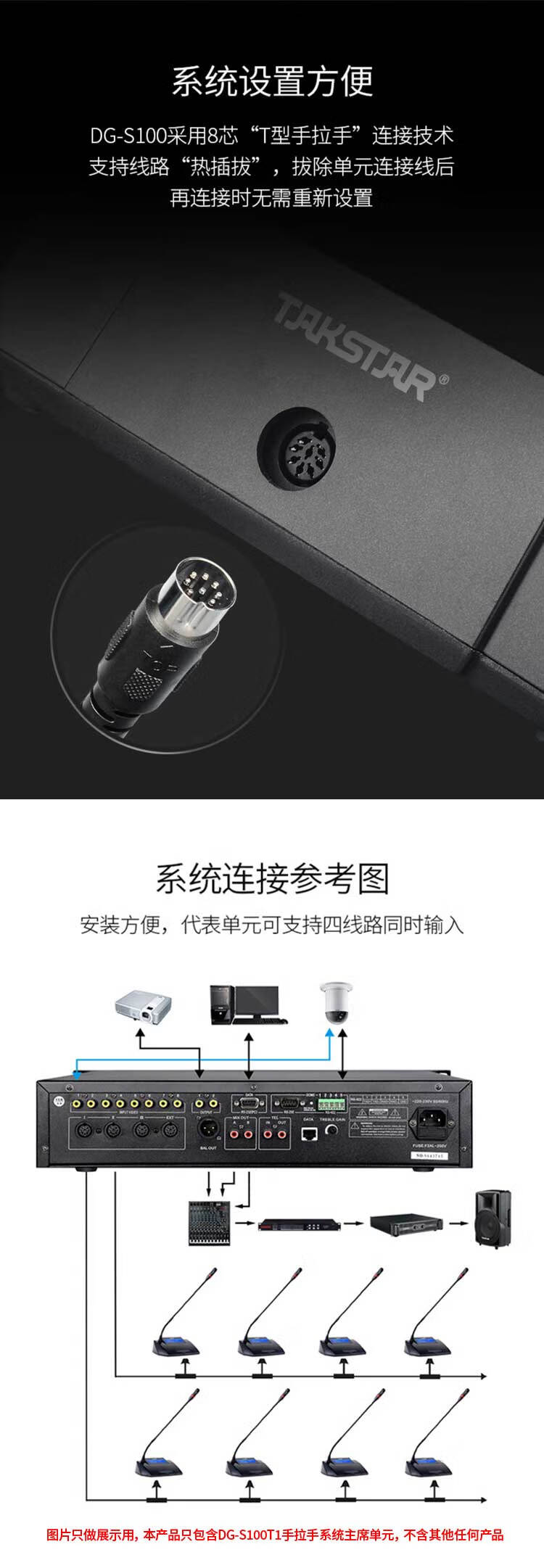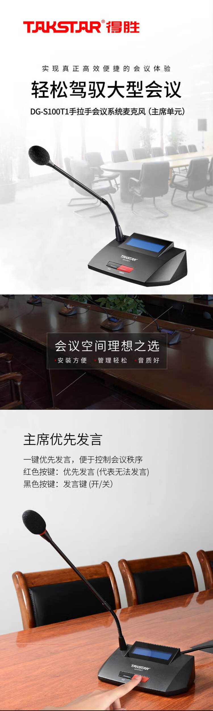 商品名称: 得胜(TAKSTAR)DG-S100 T1主席单元 有线手拉手会议系统 主席单元(台) DG-S100 T1/台