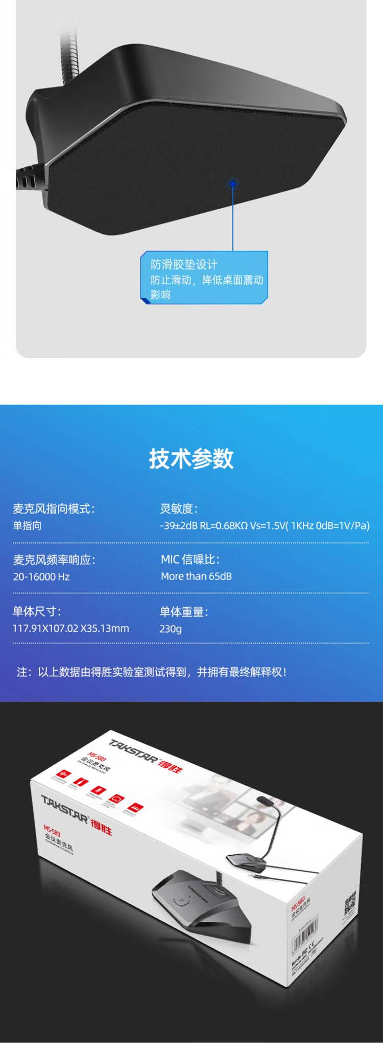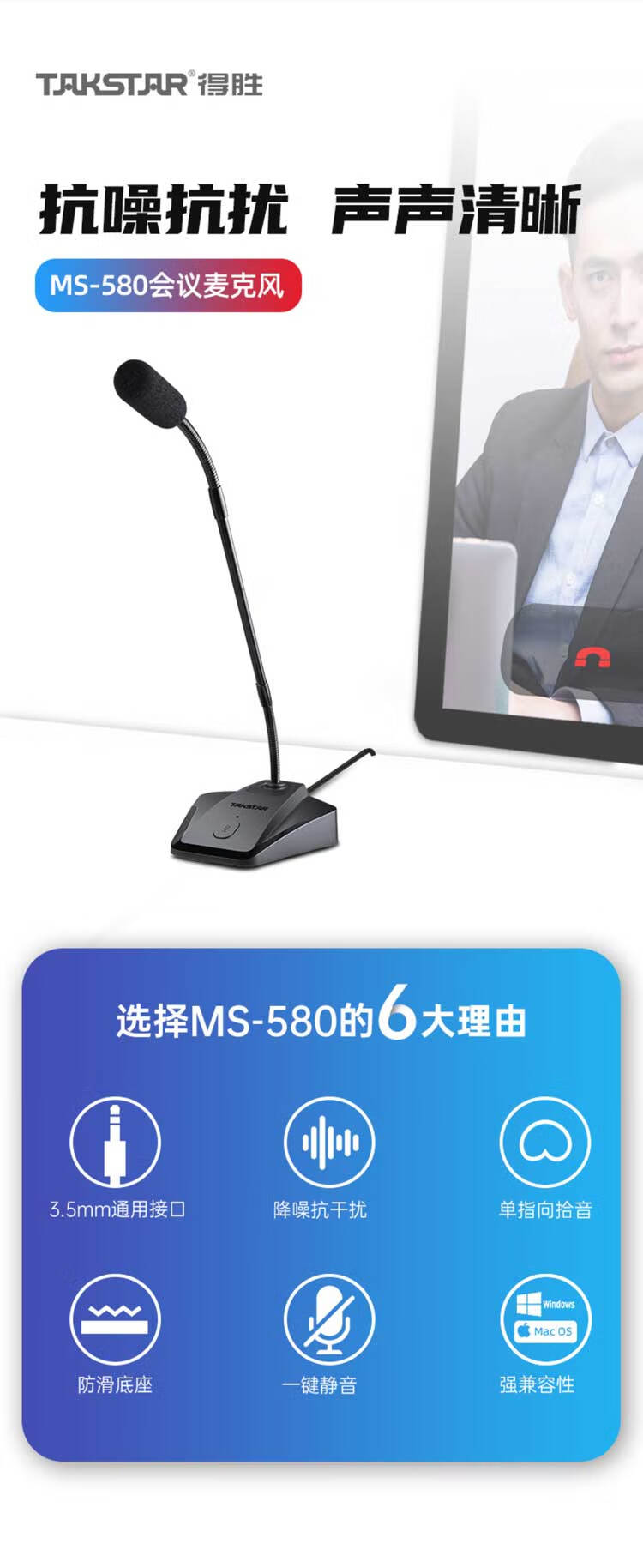 • 商品名称:得胜(TAKSTAR)会议麦克风 演讲会议主持广播话筒麦单指向鹅颈式有线麦克风 MS-580 MS-580/台