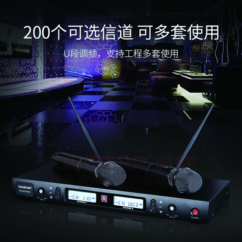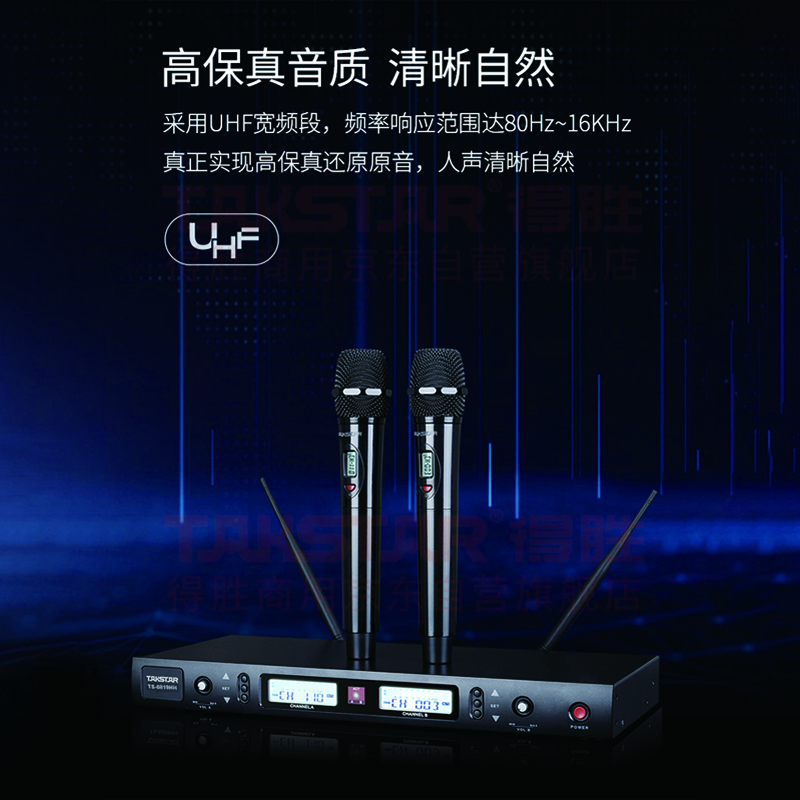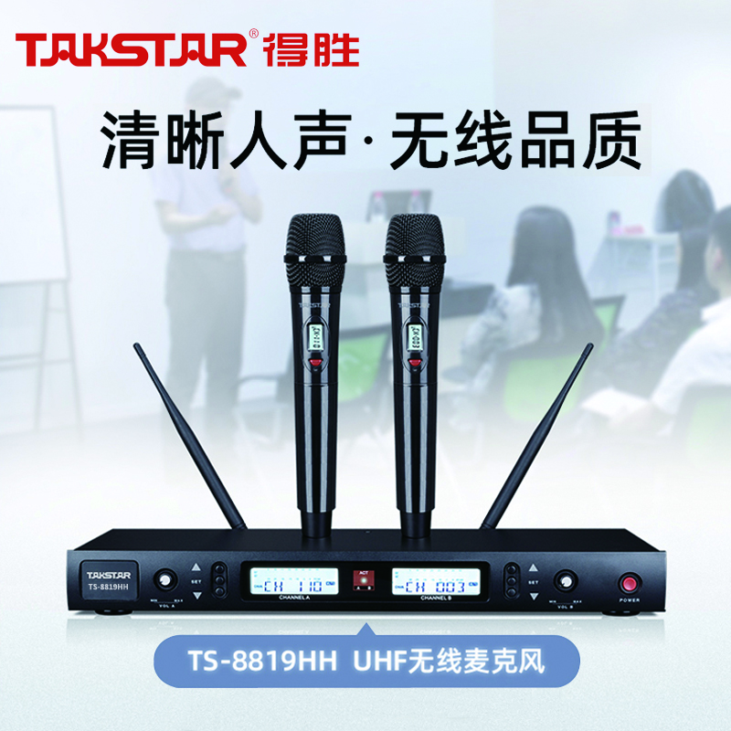 数码  > 影音娱乐  > 麦克风  >  得胜/TAKSTAR  >  得胜(TAKSTAR)TS-8819HH 一拖二无线手持麦克风 U段无线双手持话筒 高保真分级式 主持演讲培训广播婚庆晚会 TS-8819/套
