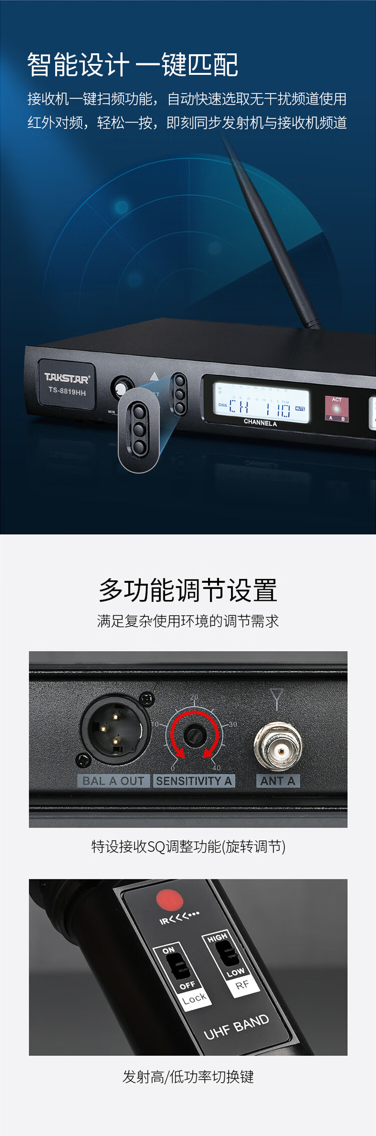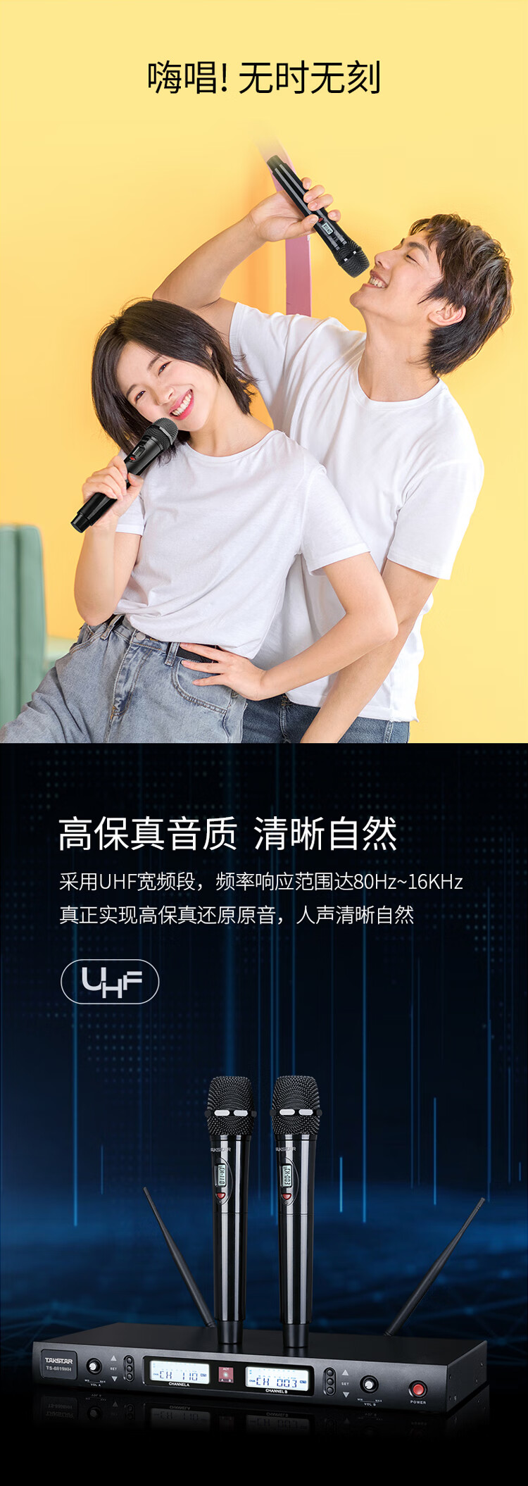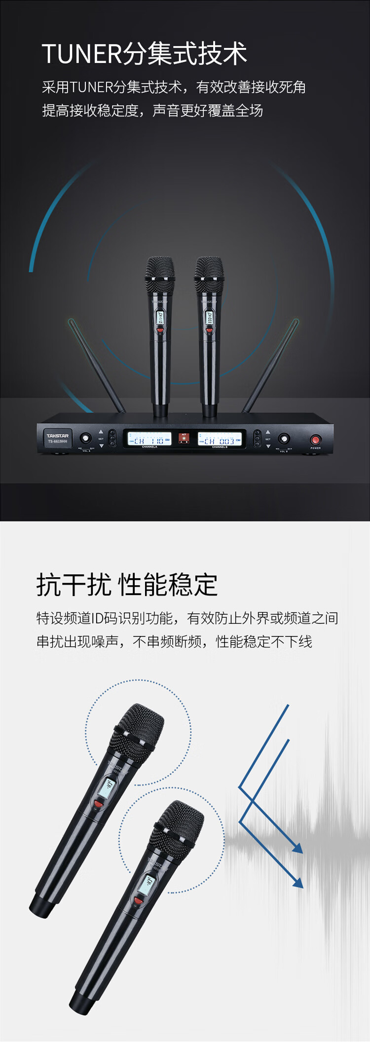 • 商品名称:得胜(TAKSTAR)TS-8819HH 一拖二无线手持麦克风 U段无线双手持话筒 高保真分级式 主持演讲培训广播婚庆晚会 TS-8819/套