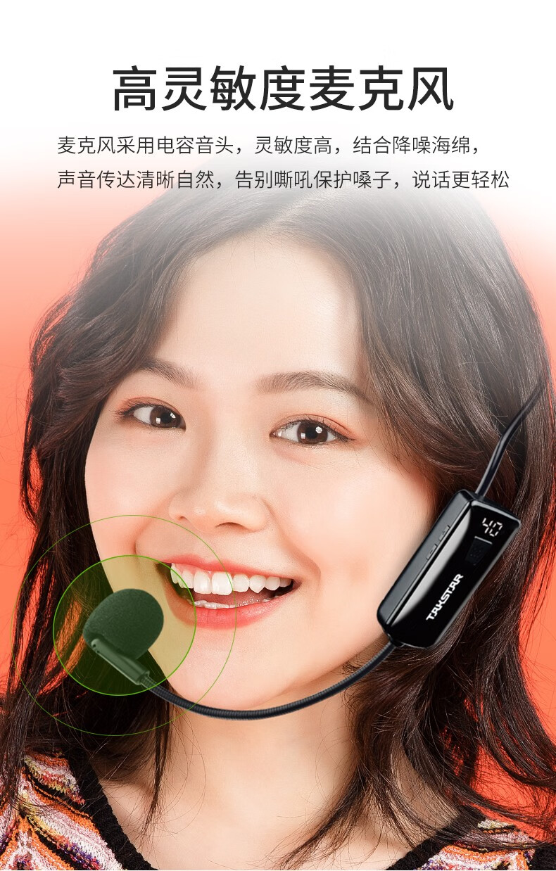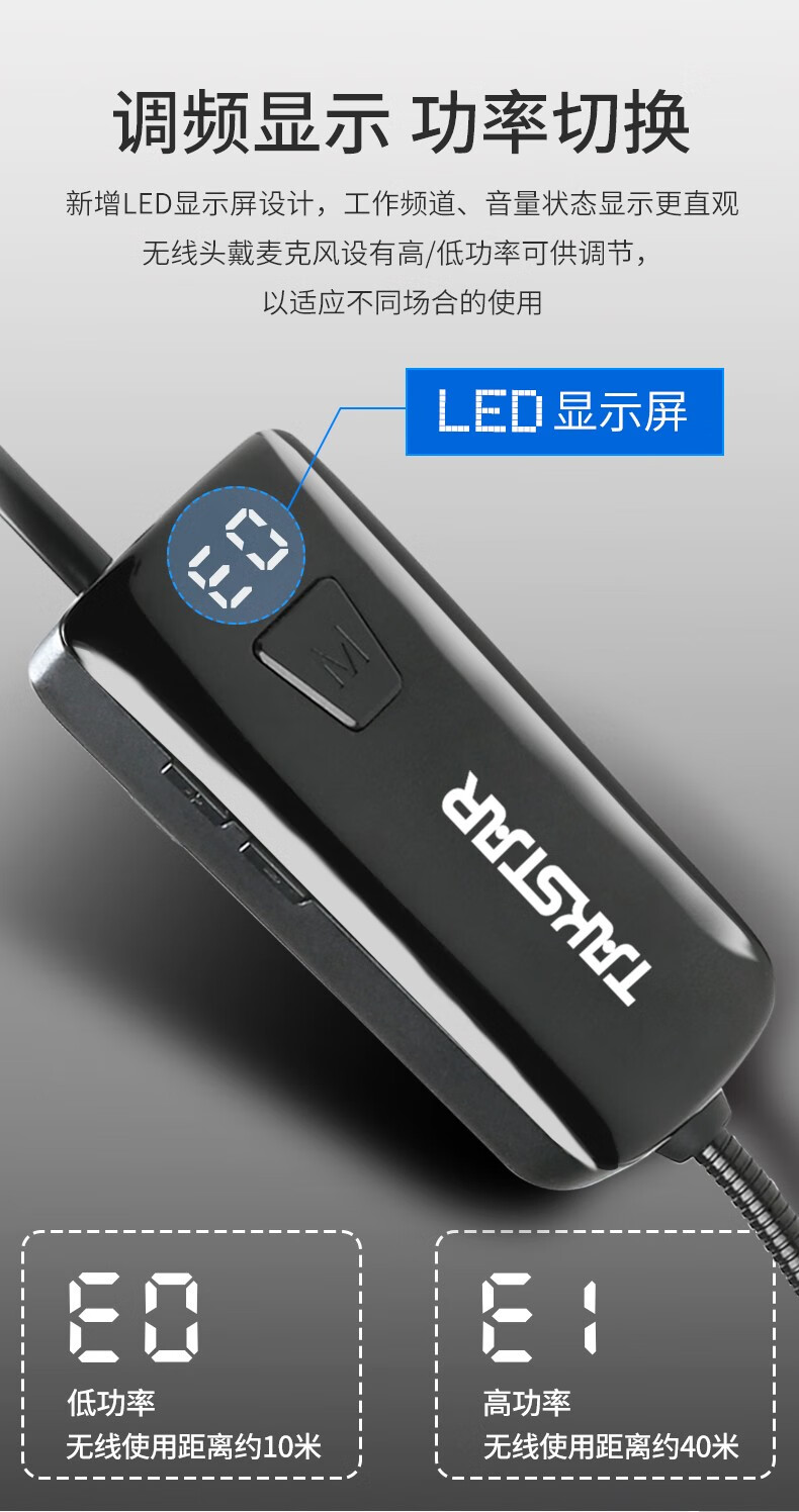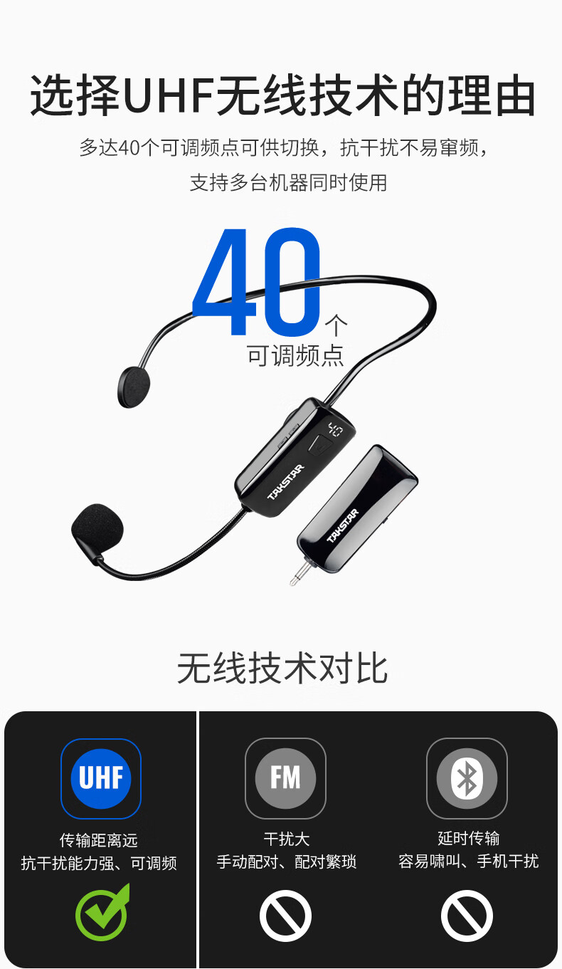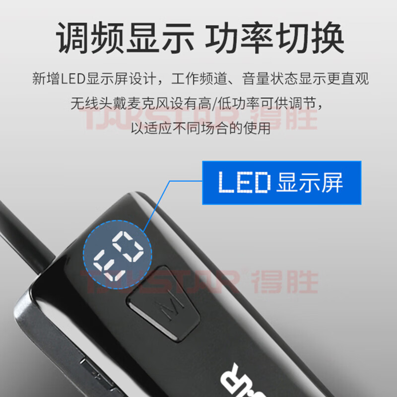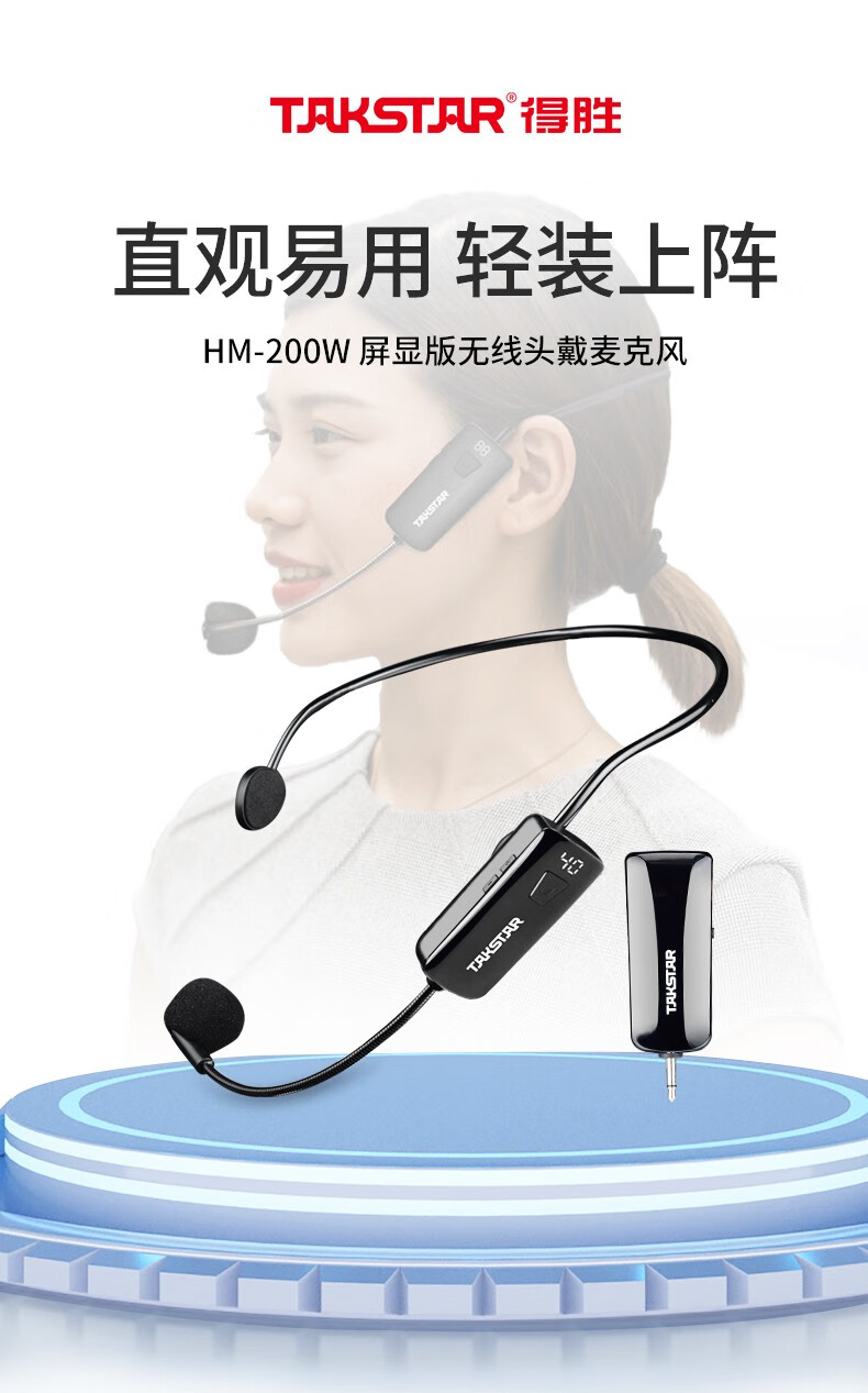 • 商品名称:得胜(TAKSTAR)屏显版 小蜜蜂无线UHF头戴麦克风 演讲老师教学导游宣传(配合扩音器或音箱使用)HM-200W HM-200W/台