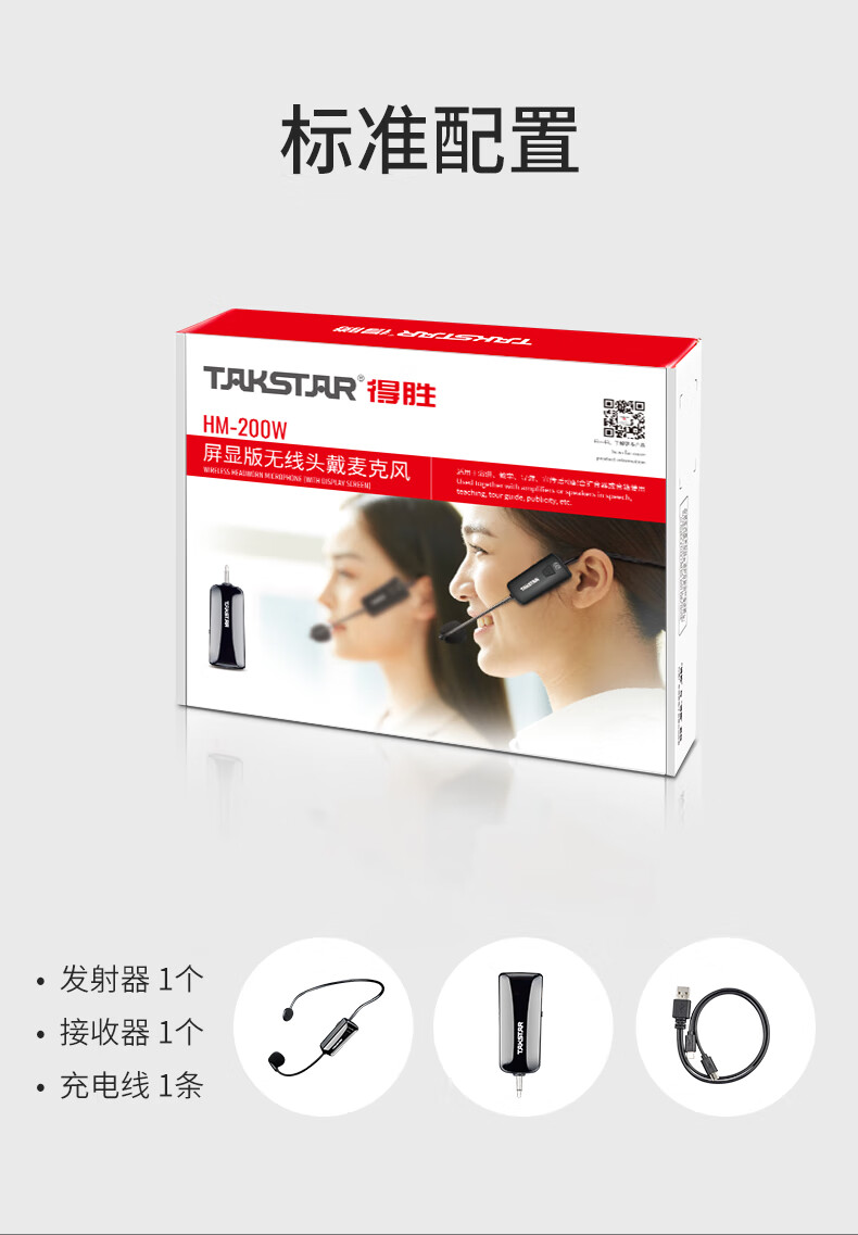 得胜(TAKSTAR)屏显版 小蜜蜂无线UHF头戴麦克风 演讲老师教学导游宣传(配合扩音器或音箱使用)HM-200W HM-200W/台