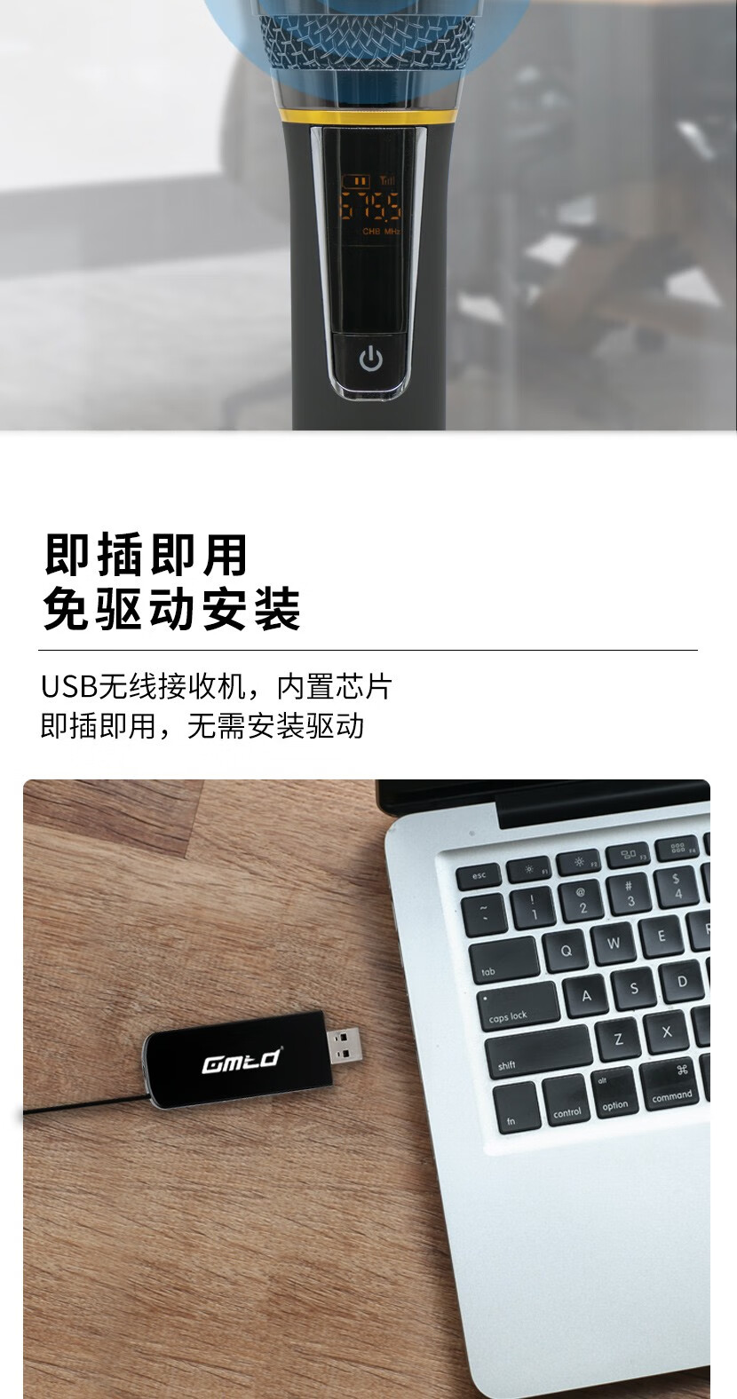 商品名称: Gmtd 金迈电脑USB无线麦克风手持话筒 笔记本电视教学演讲舞台家庭K歌会议麦克风 USB双手持GM-S302 麦克风/组