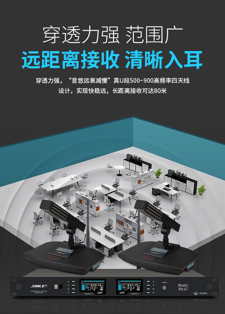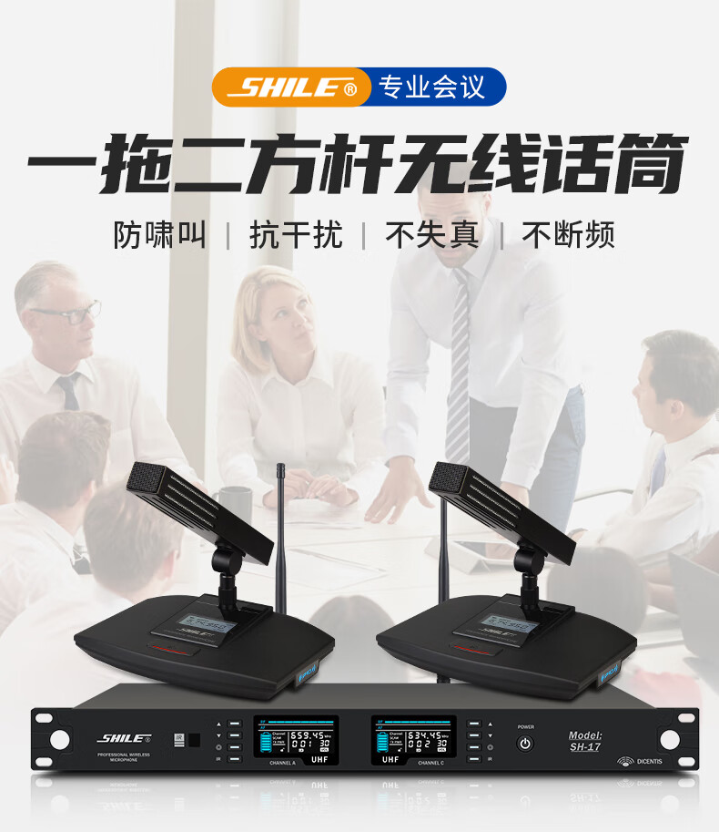 • 商品名称:狮乐(SHILE) SH-17专业会议室麦克风短管款 无线U段可调频防干扰会议桌面鹅颈话筒方杆式 SH-17/套