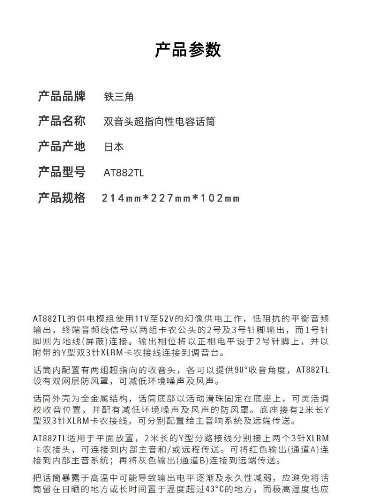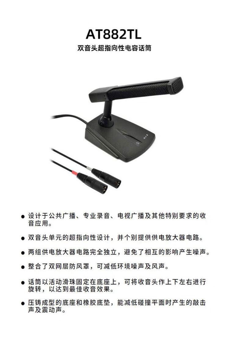 • 商品名称:铁三角双音头超指向电容话筒AT882TL AT882TL/套