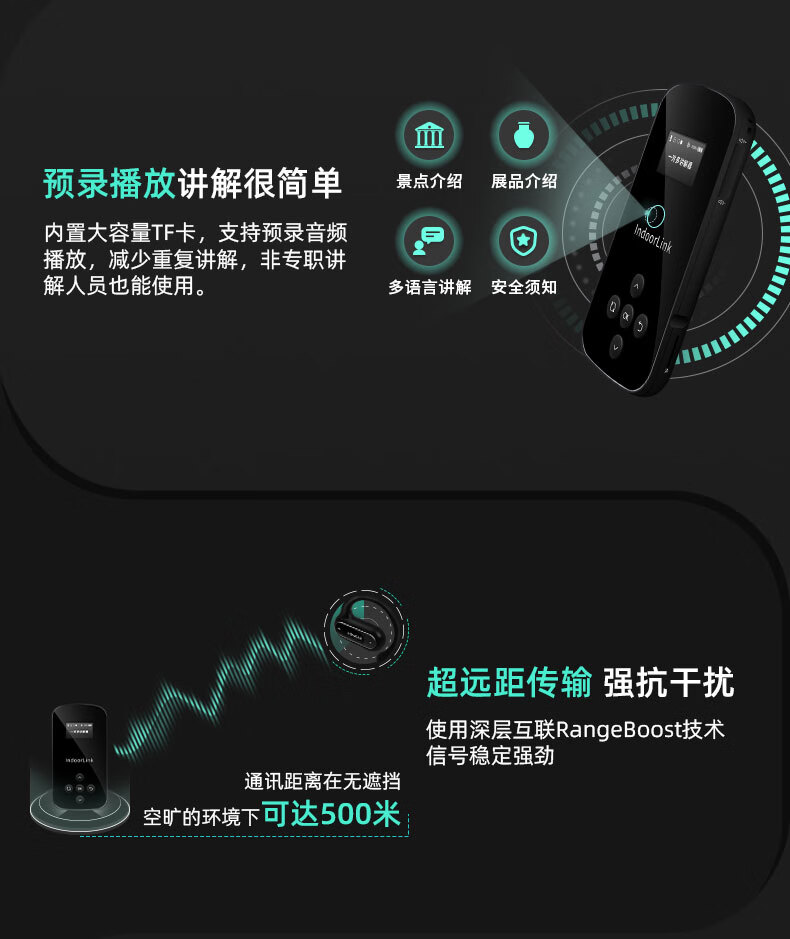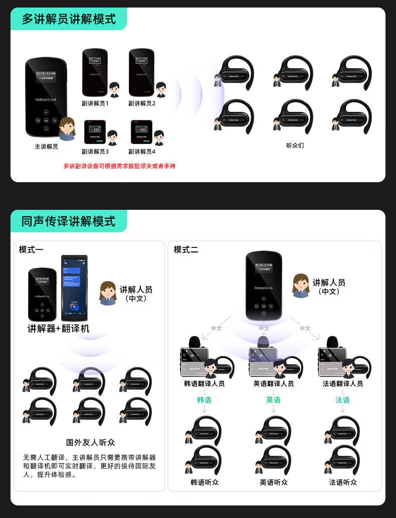 • 商品名称:IndoorLink讲解器一对多无线政企接待商务会议项目考察博物馆展厅同声传译团队讲解器 手持发射器SCHL-E201H SCHL-E201H/E105/套