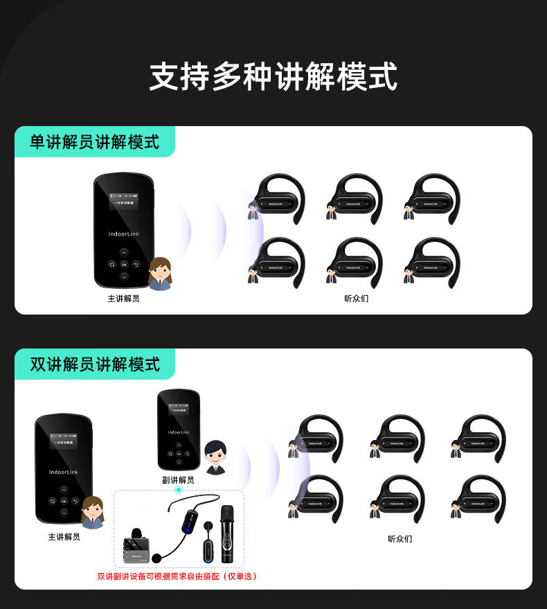 IndoorLink讲解器一对多无线政企接待商务会议项目考察博物馆展厅同声传译团队讲解器 手持发射器SCHL-E201H SCHL-E201H/E105/套