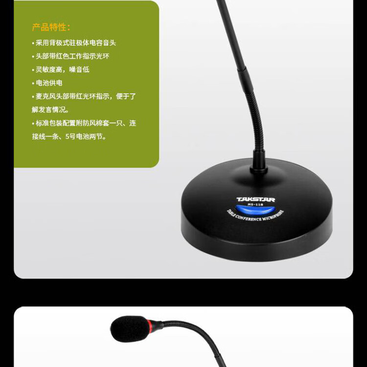 商品名称: 得胜(TAKSTAR)台式会议麦克风 有线会议鹅颈话筒 公司会议专用 活动演讲 校园会议桌面话筒 MS-118 MS-118/台