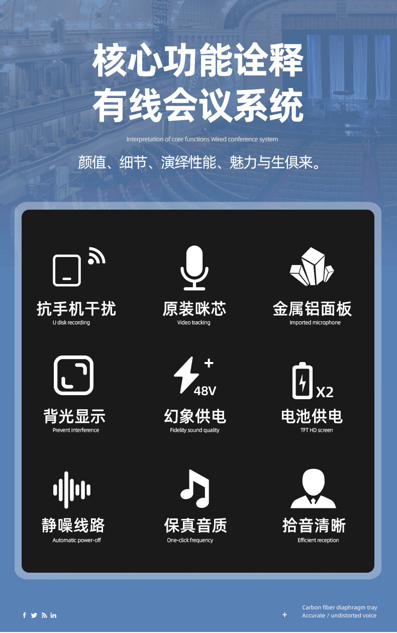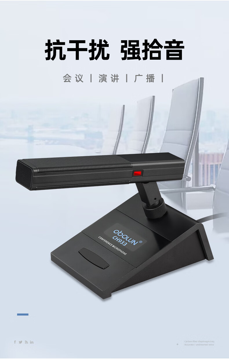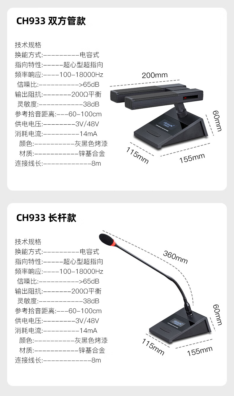 • 商品名称:欧莱声(obolun)CH933有线电容会议麦克风带48V工程鹅颈长杆话筒方管短杆双咪芯会议有线话筒 CH933/支
